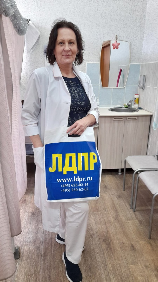 Координатор ЛДПР в Орджоникидзевском районе Магнитогорска Наталья Зорина приняла участие в акции «ДариДобро» и вручила подарки от партии специалистам массажного кабинета поликлиники №2