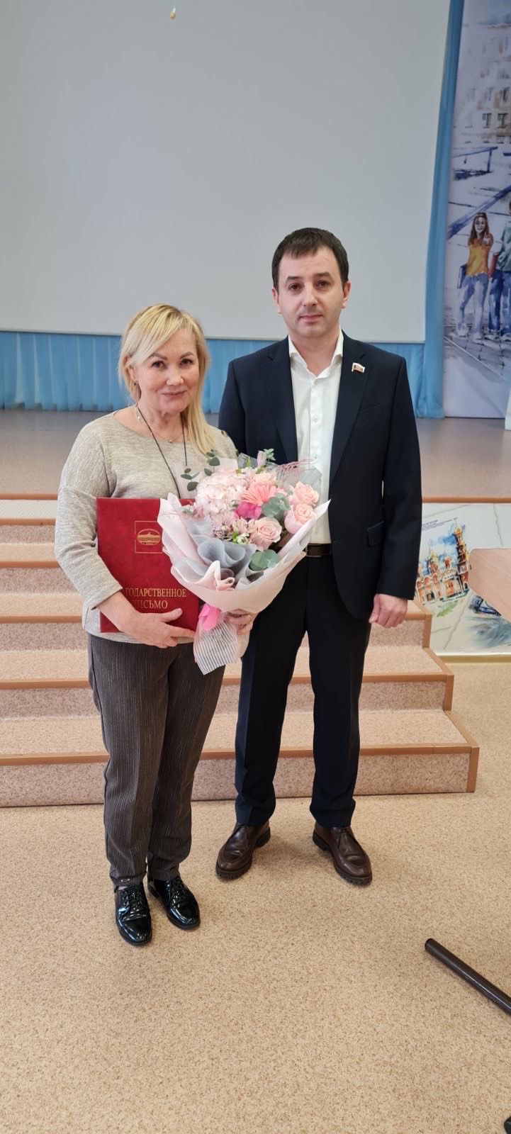 Депутат ЛДПР Евгений Данников посетил МБОУ «Гимназия № 2» в городе Нижневартовске и вручил благодарственное письмо Тюменской областной Думы учителю начальных классов Галине Скворцовой за многолетний добросовестный труд и значительный вклад в развитие образования и воспитания подрастающего поколения