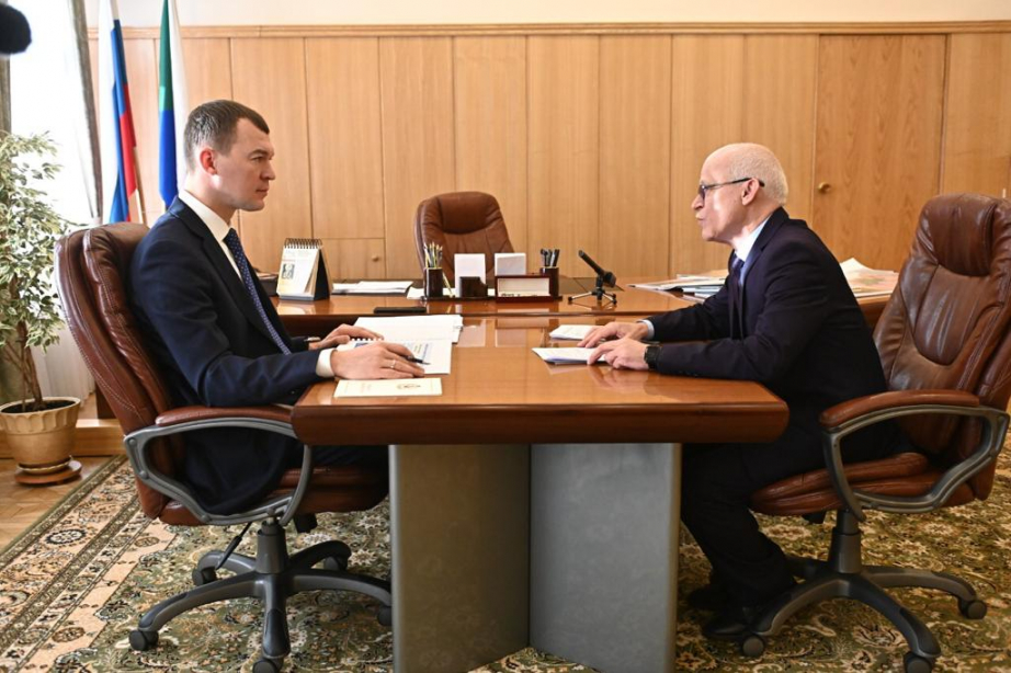 Губернатор Хабаровского края Михаил Дегтярёв и глава Амурского района Павел Боровлев обсудили итоги прошлого года, уделив внимание и планам на 2022-ой