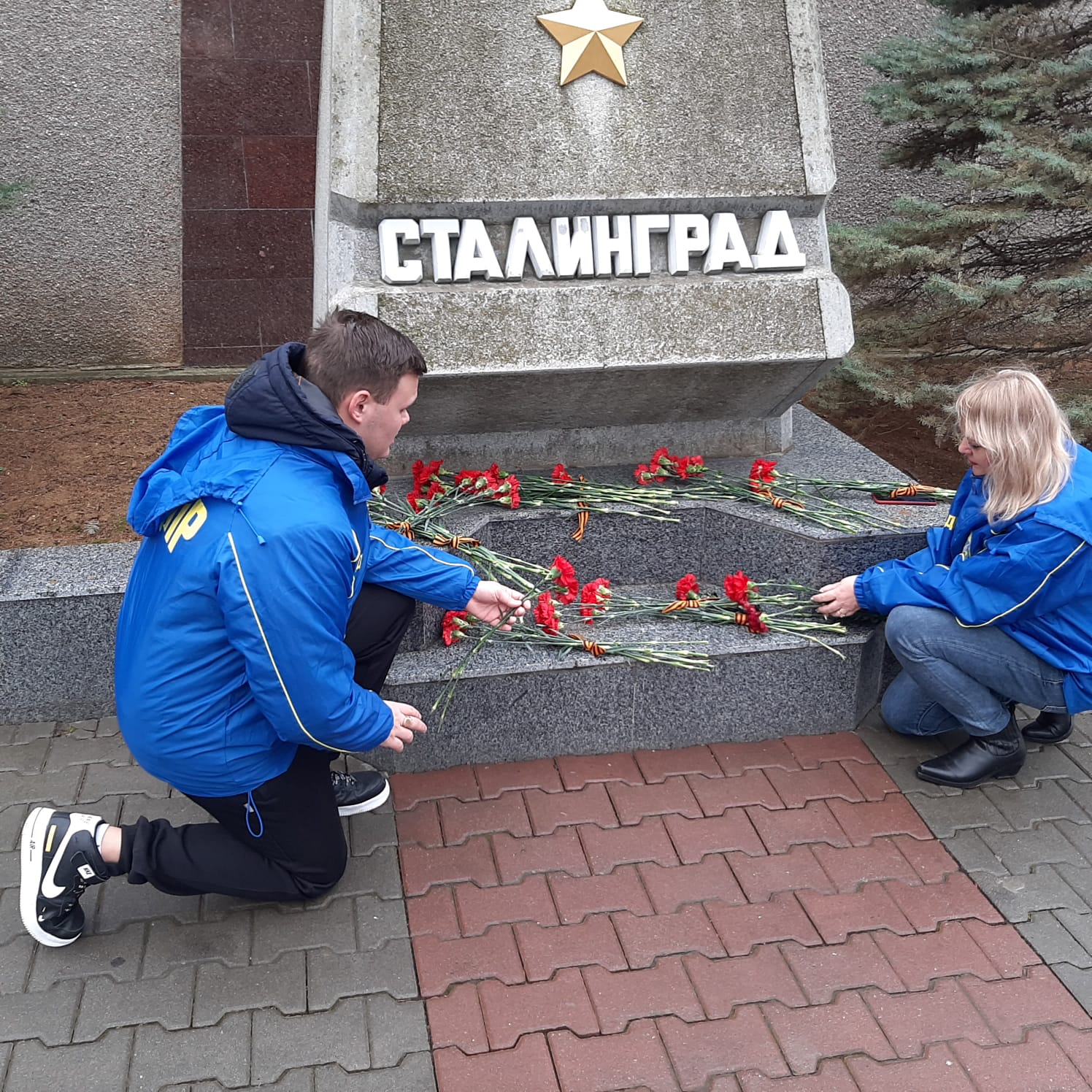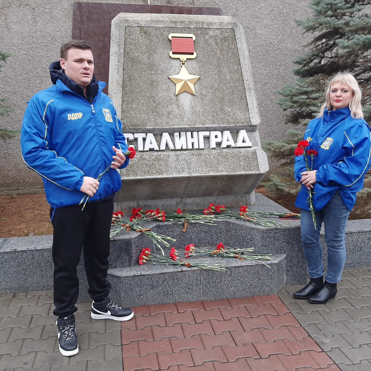 Координатор Ленинского отделения ЛДПР Виктория Этенко, активист молодежной организации Борис Этенко и координатор первичного отделения ЛДПР «Сафронова» Екатерина Литвиненко возложили цветы на площади Нахимова на аллее городов-героев в память о погибших во время Сталинградской битвы