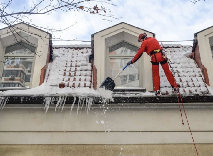 Жители Алексеевского района обеспокоены как «Жилищник» убирает снег с крыши дома по улице Константинова, 16