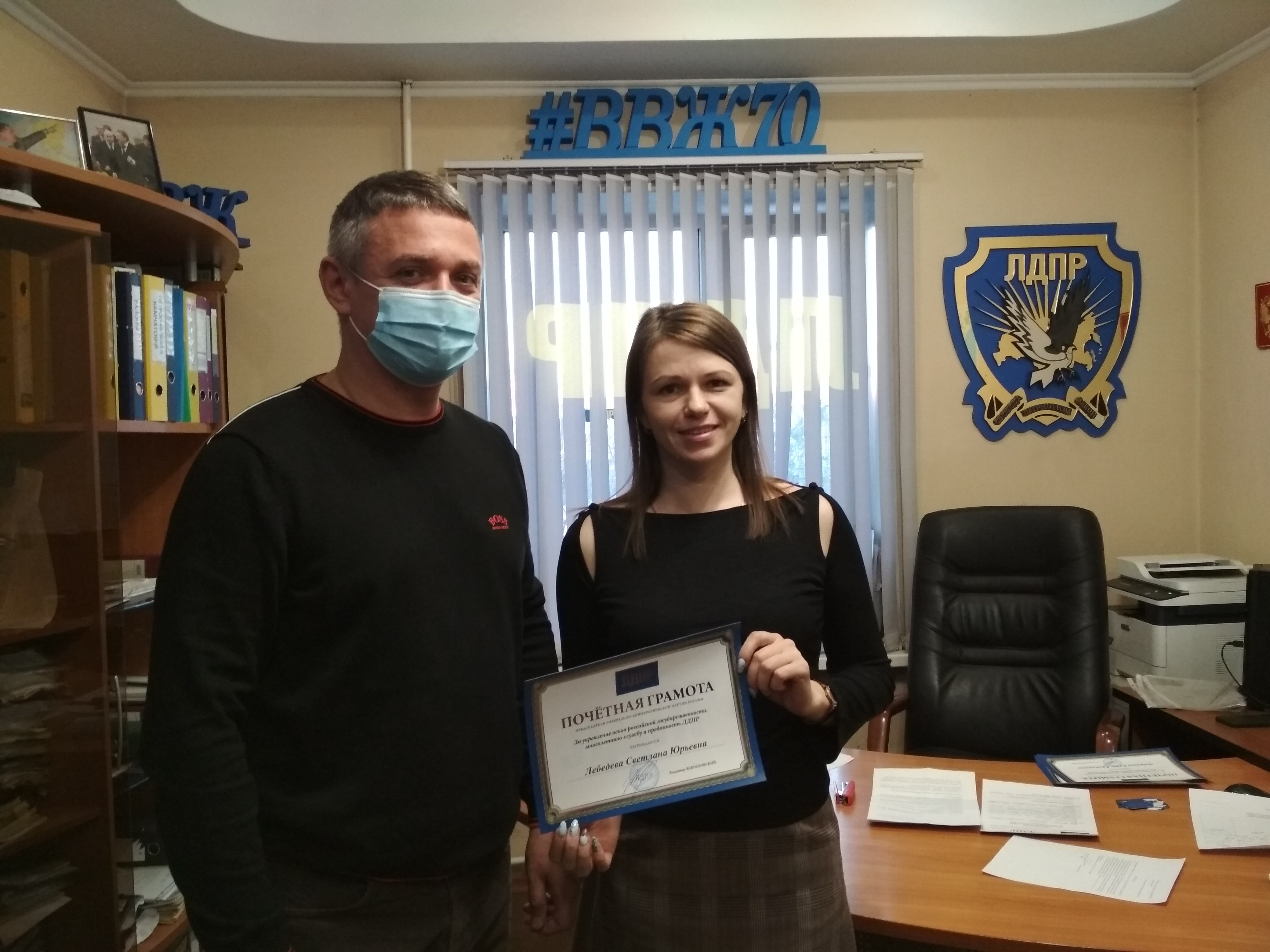 На повестке дня было несколько важных вопросов, и один из самых приятных – награждение грамотами с подписью лидера партии Владимира Жириновского партийных активистов, ярко проявивших себя в 2021 году. Награды из рук координатора отделения Валерия Калашникова получили Светлана Лебедева, Ян Мудров, Василий Колядка и Татьяна Боева. Остальные грамоты ждут выздоровления своих заболевших хозяев.