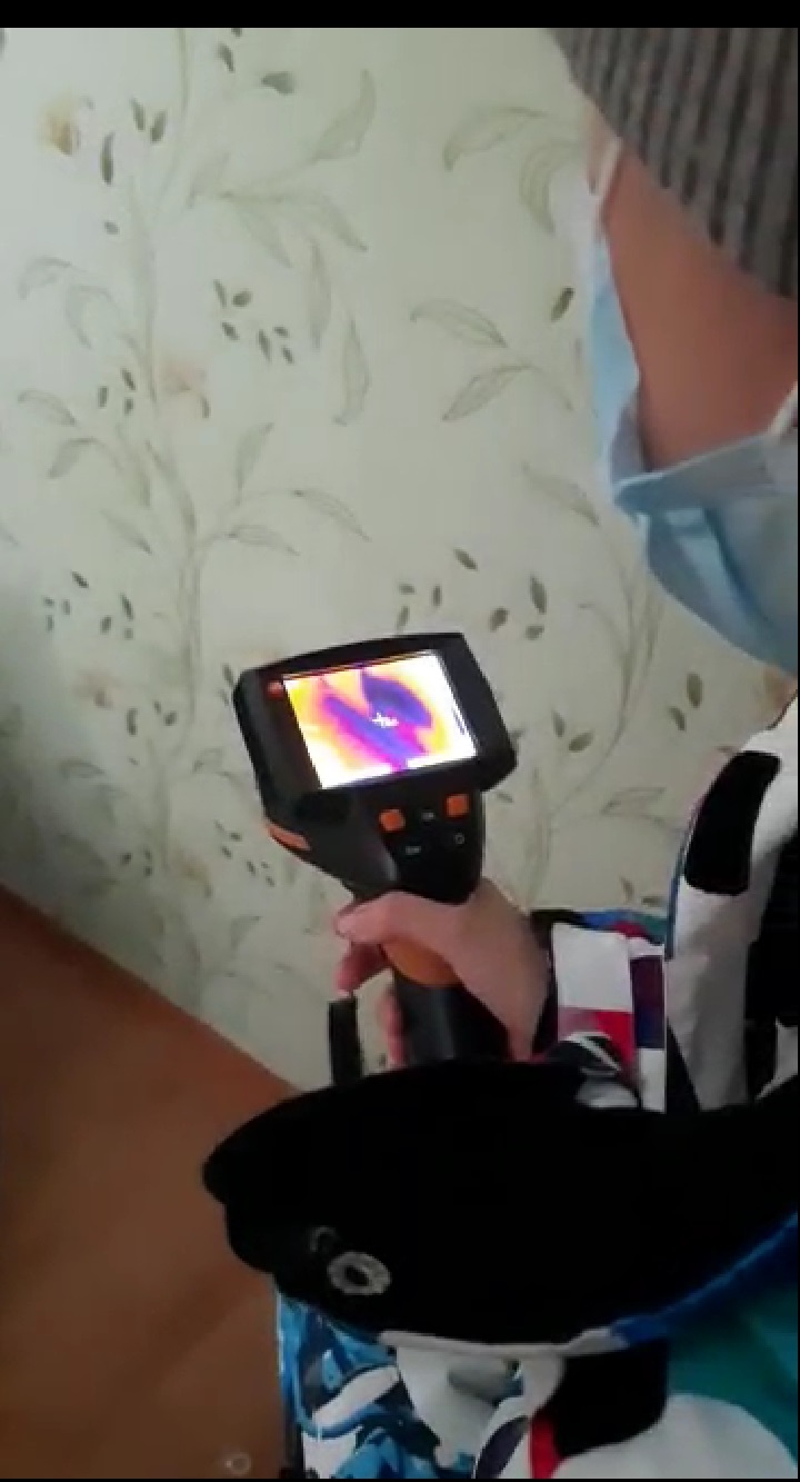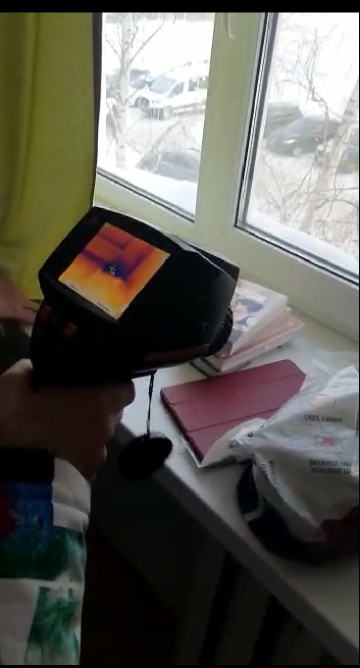 Квартира промерзает, стены покрываются плесенью. Неоднократно актив партии как устно, так и письменно обращался в управляющую компанию с просьбой произвести замер тепловизором температуры в помещении, определить места промерзания. Долго ждали, но наконец-то, накануне работники управляющей компании выехали по адресу, и специалисты провели замеры температуры тепловизором. Факт промерзания установлен. Теперь будут утеплять стену и швы снаружи данного многоквартирного дома в Урае. Специалистами было решено провести утепление промерзающих участков стен.