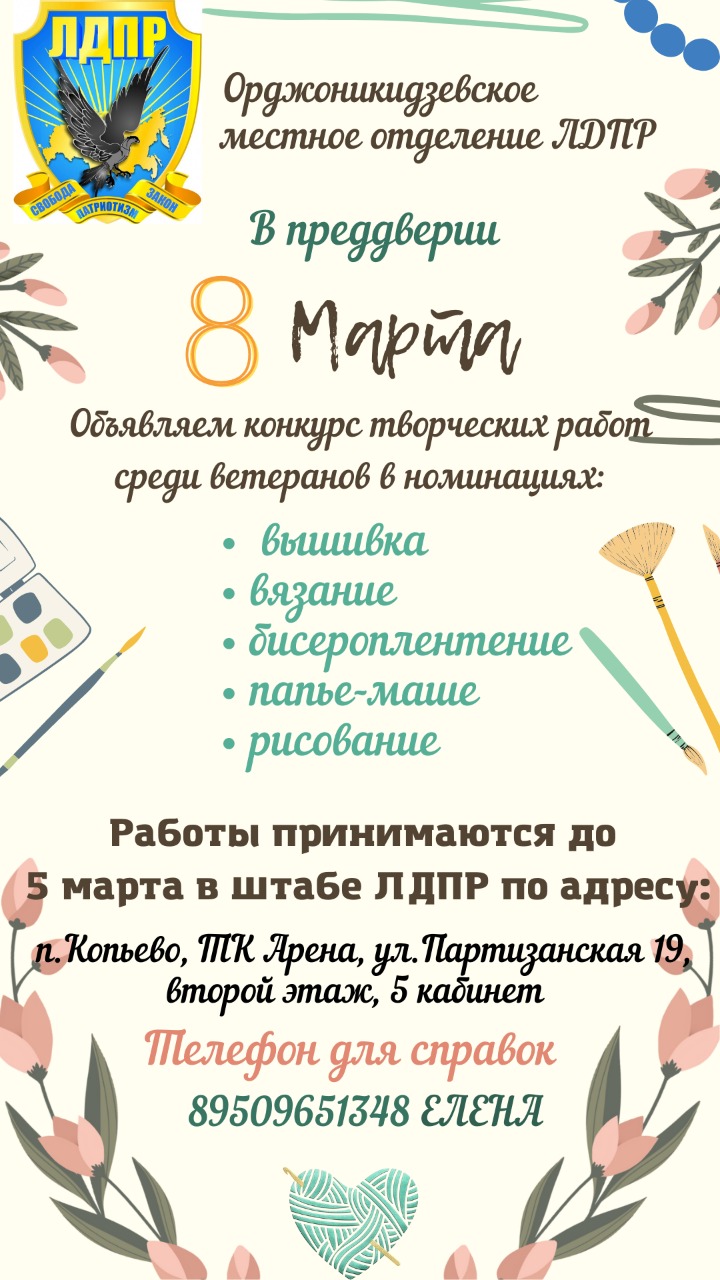 В преддверии Международного женского дня ЛДПР Орджоникидзеского района объявило о конкурсе поделок.