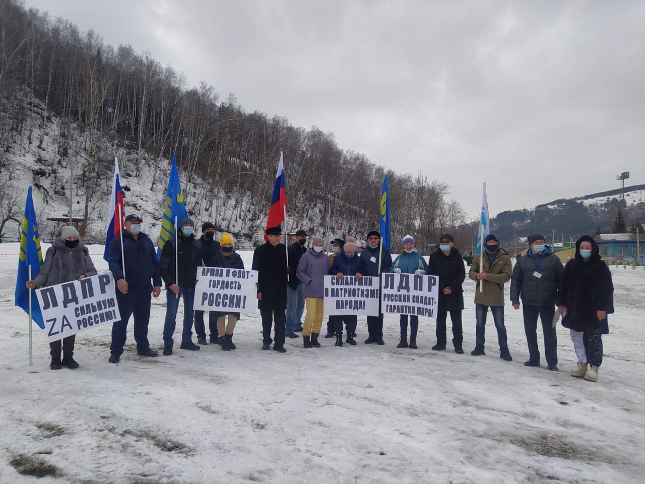 Активисты Алтайского республиканского отделения ЛДПР провели митинг в поддержку спецоперации Российской армии в Донецкой и Луганской народных республиках и против неофашизма на Украине