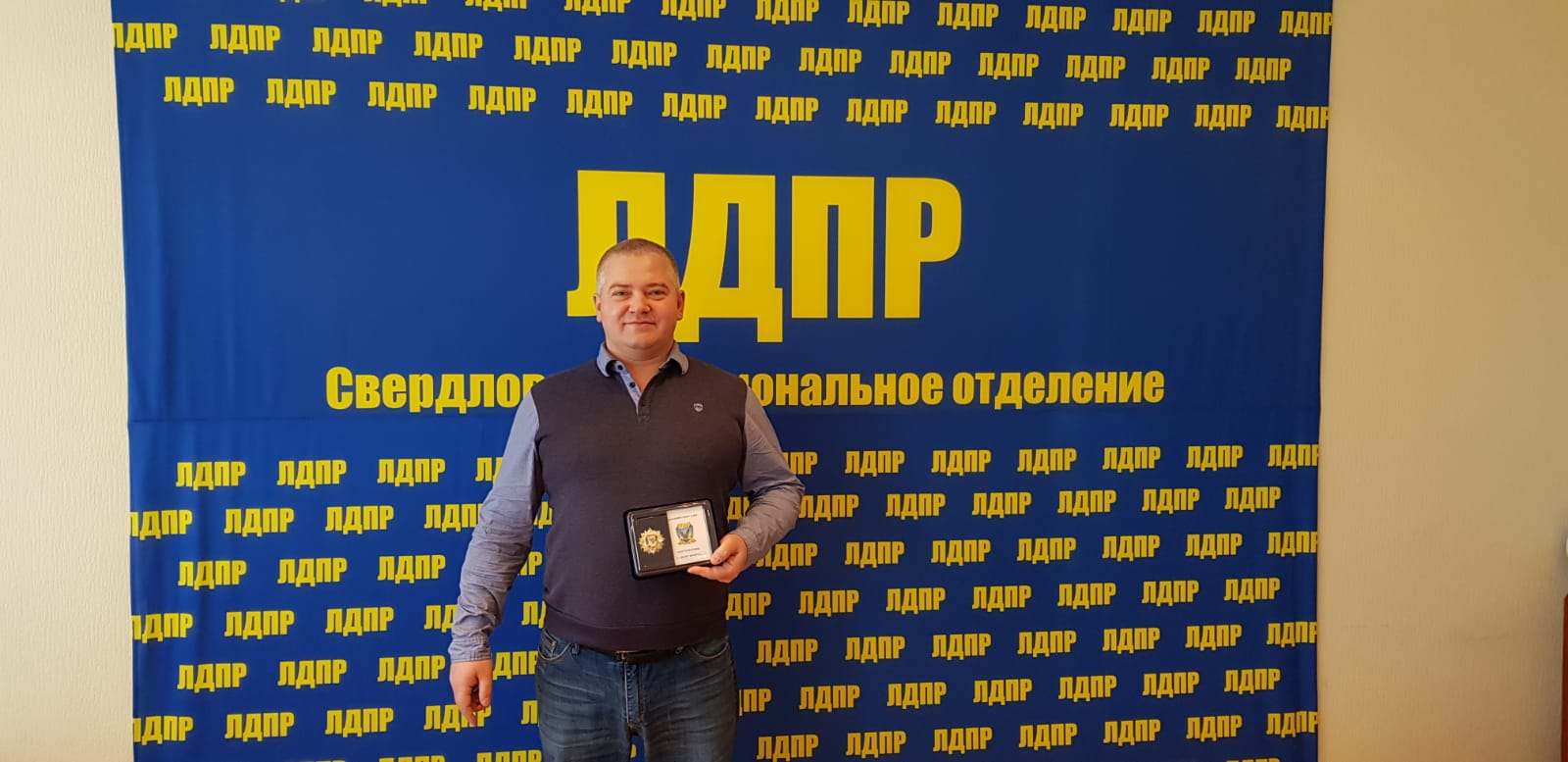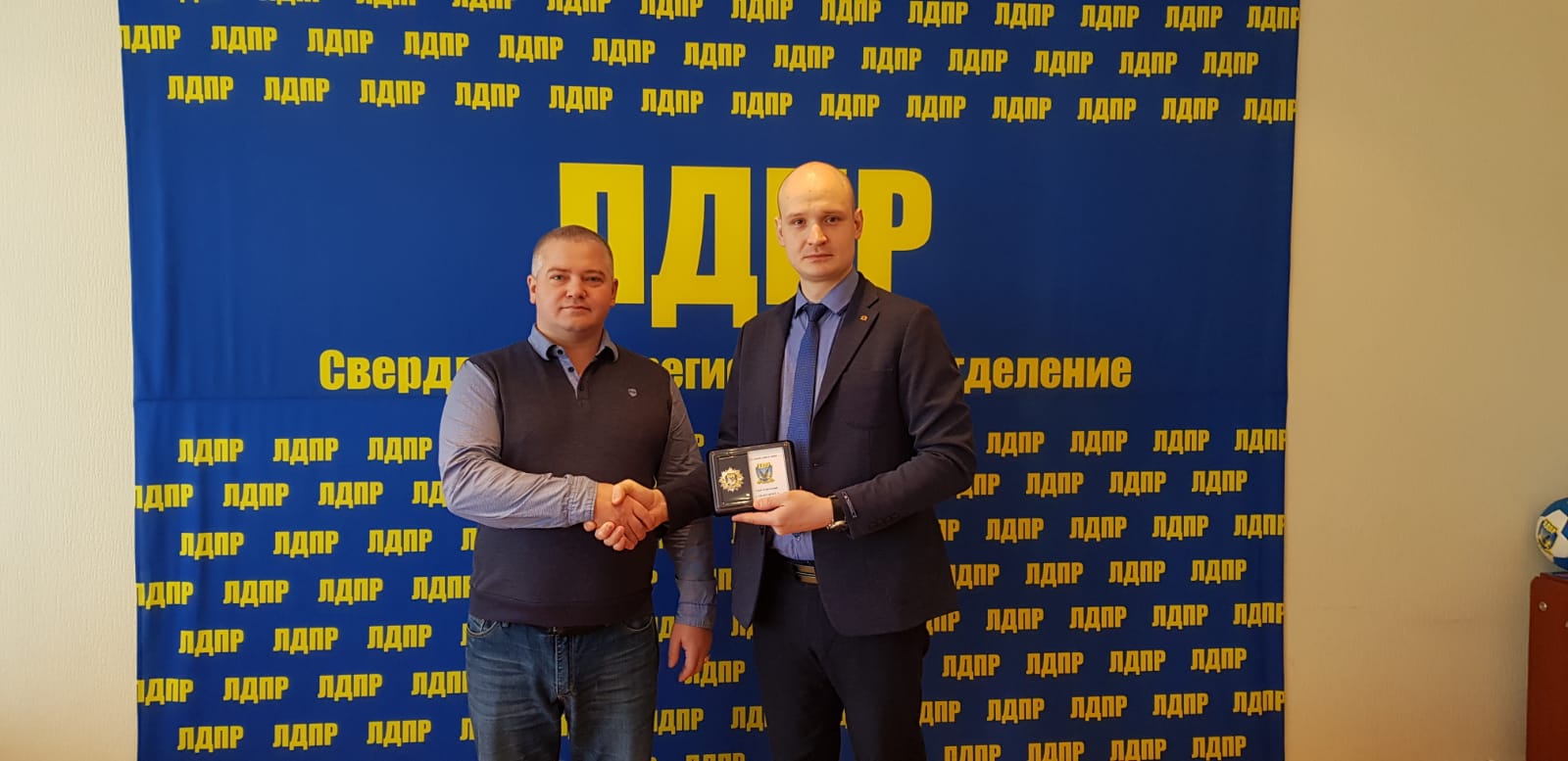 В Свердловском региональном отделении ЛДПР состоялось награждение координатора Ленинского первичного отделения ЛДПР г. Екатеринбурга Андрея Дорохова, который удостоен «Знака Почета ЛДПР»