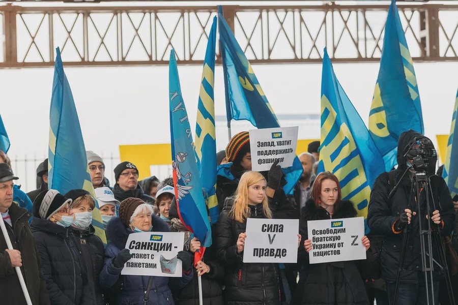 Первый замруководителя фракции ЛДПР в ГД Василий Власов приветствовал участников митинга, помогающих собирать гуманитарную помощь для беженцев из ДНР и ЛНР, а также поблагодарил всех военнослужащих Русской армии, которые сегодня «приносят мир жителям Украины».