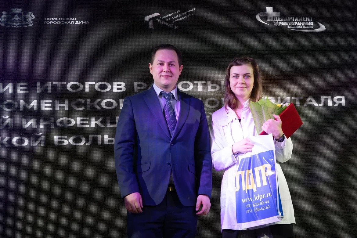 Депутат Тюменской областной Думы, заместитель председателя комитета по социальной политике Глеб Трубин вручил Благодарственное письмо Тюменской областной Думы врачу инфекционисту терапевтического отделения «Областной инфекционной клинической больницы»