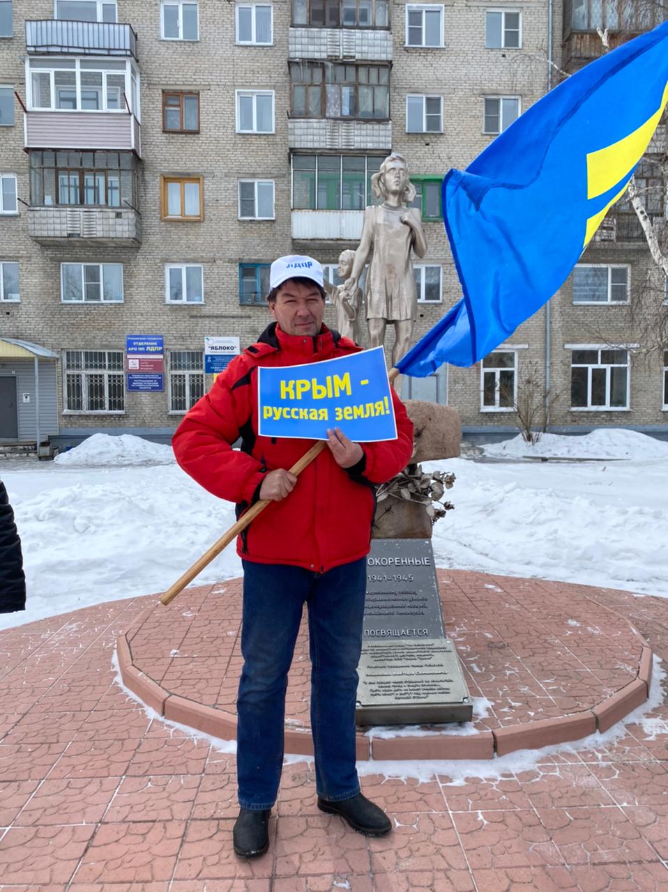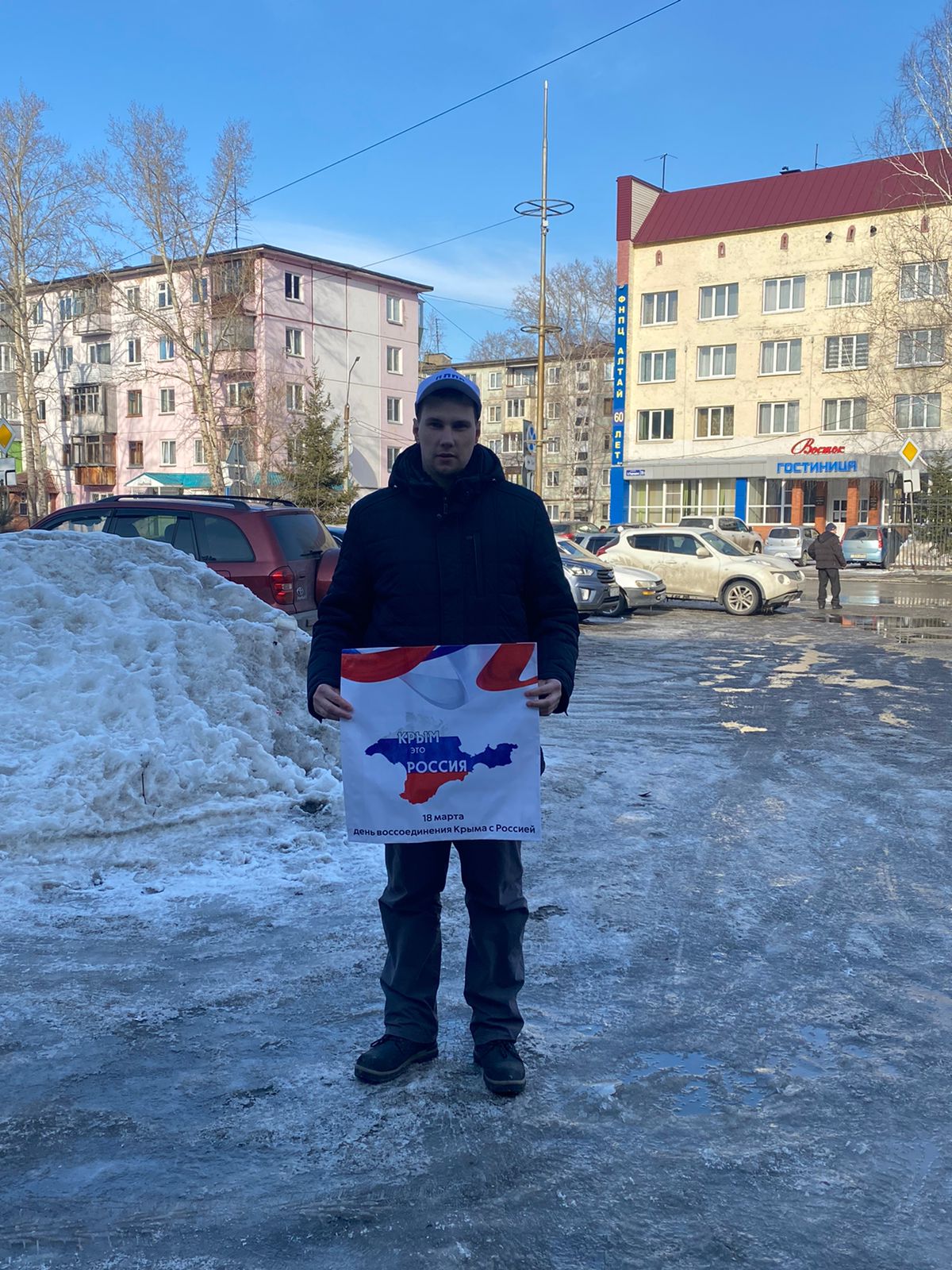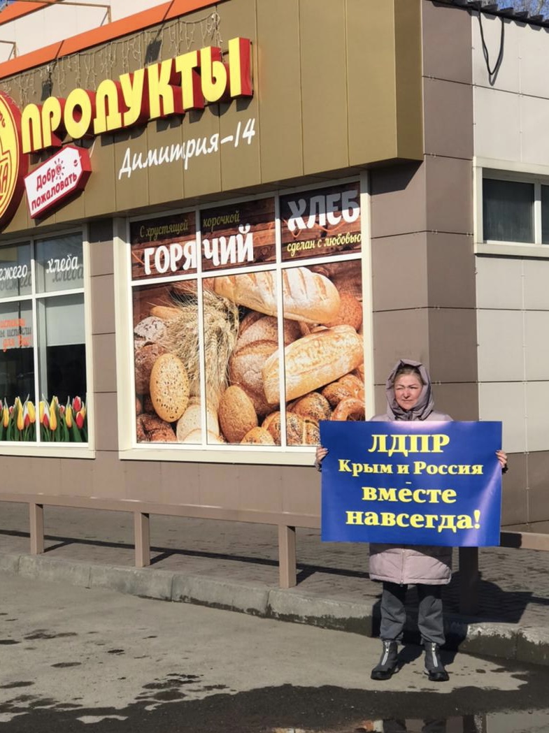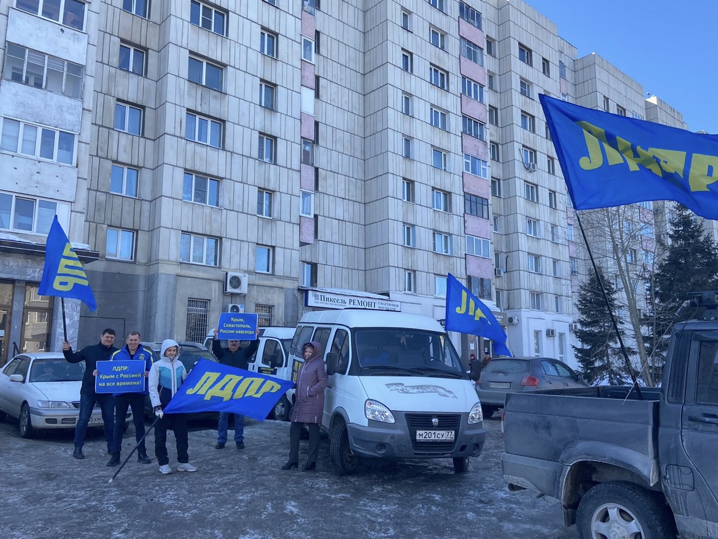 Координатор Бийского городского отделения ЛДПР Максим Железовский вместе с координаторами первичных отделений города Бийска присоединились к проведению пикетов в поддержку воссоединения Крыма и России.