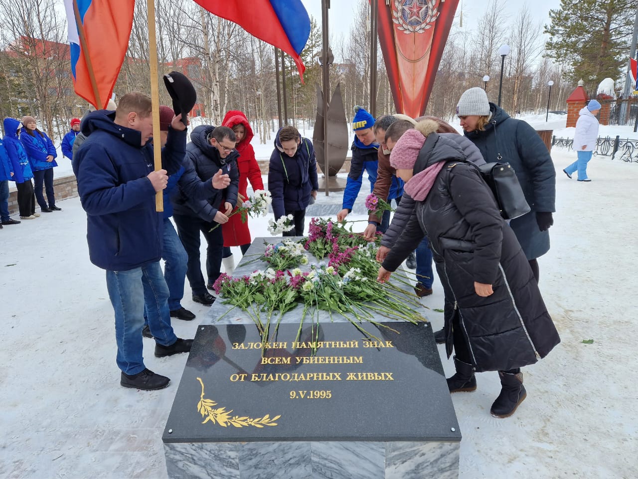 Участники автопробега провели церемонию возложении цветов, почтив память российских солдат, погибших в ходе военной спецоперации на Украине.
