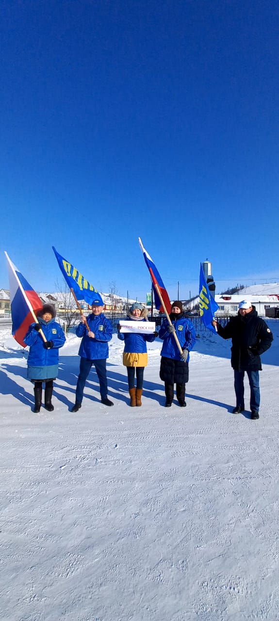 В Верхоянском районе Якутии ЛДПР вышла на митинг с флагами в честь воссоединения острова с Россией, также поддержать русскую армию в военной операции