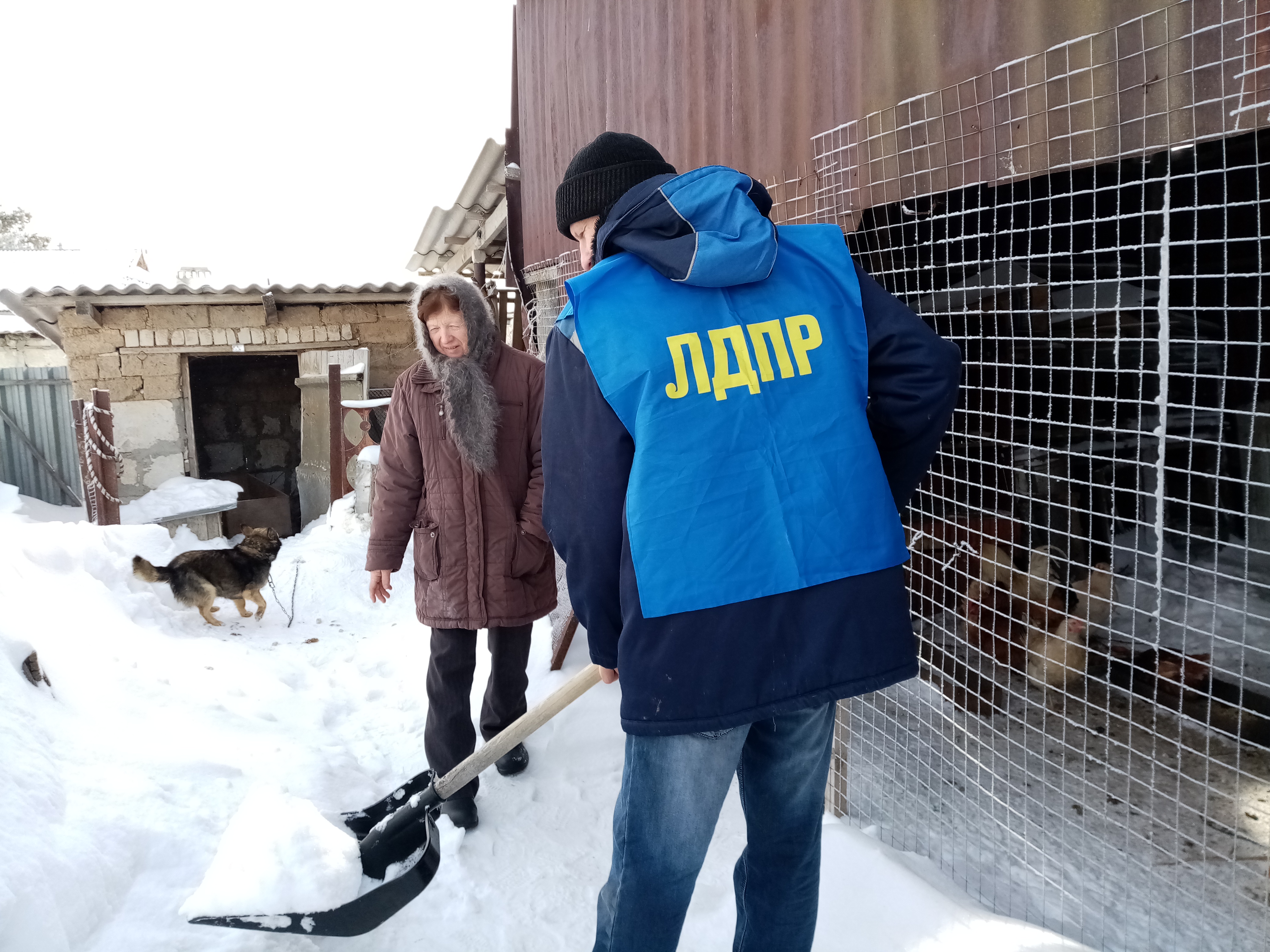 Активисты от ЛДПР также не остались в стороне и помогли ветерану Надежде Тиханиной очистить путь к хозяйственному двору, где в «снежном плену» оказались куры и собака.