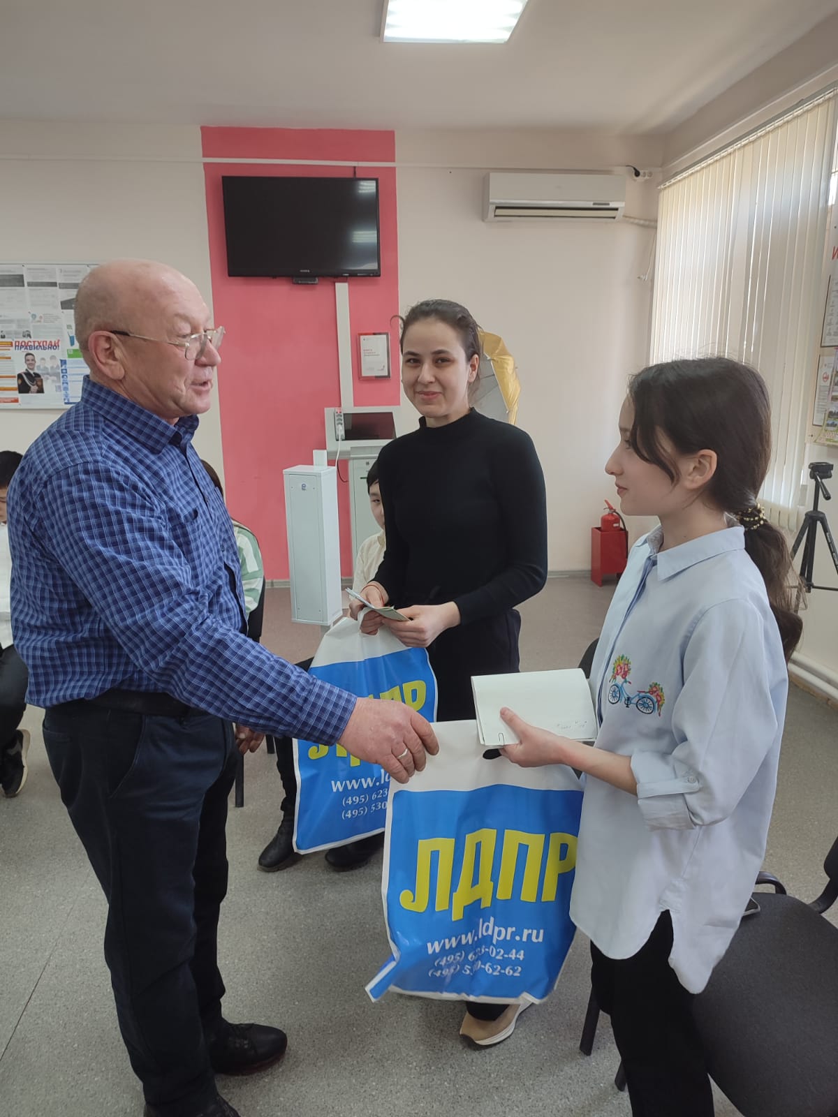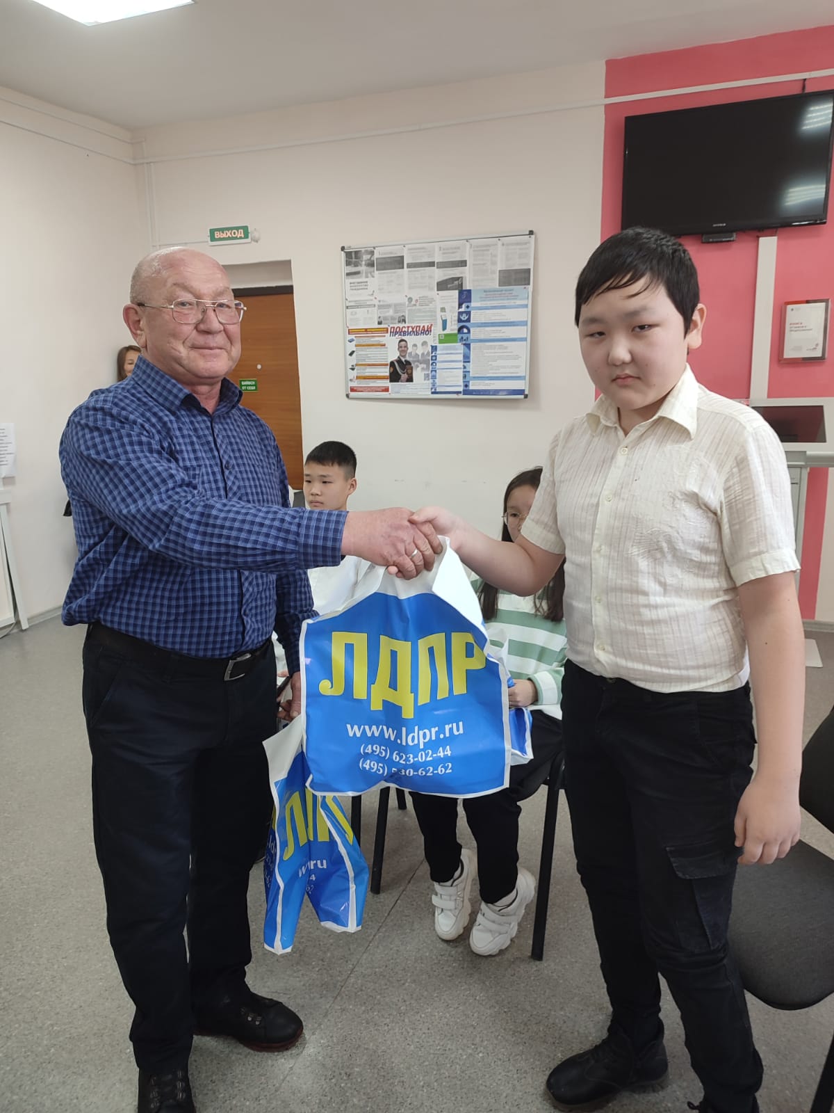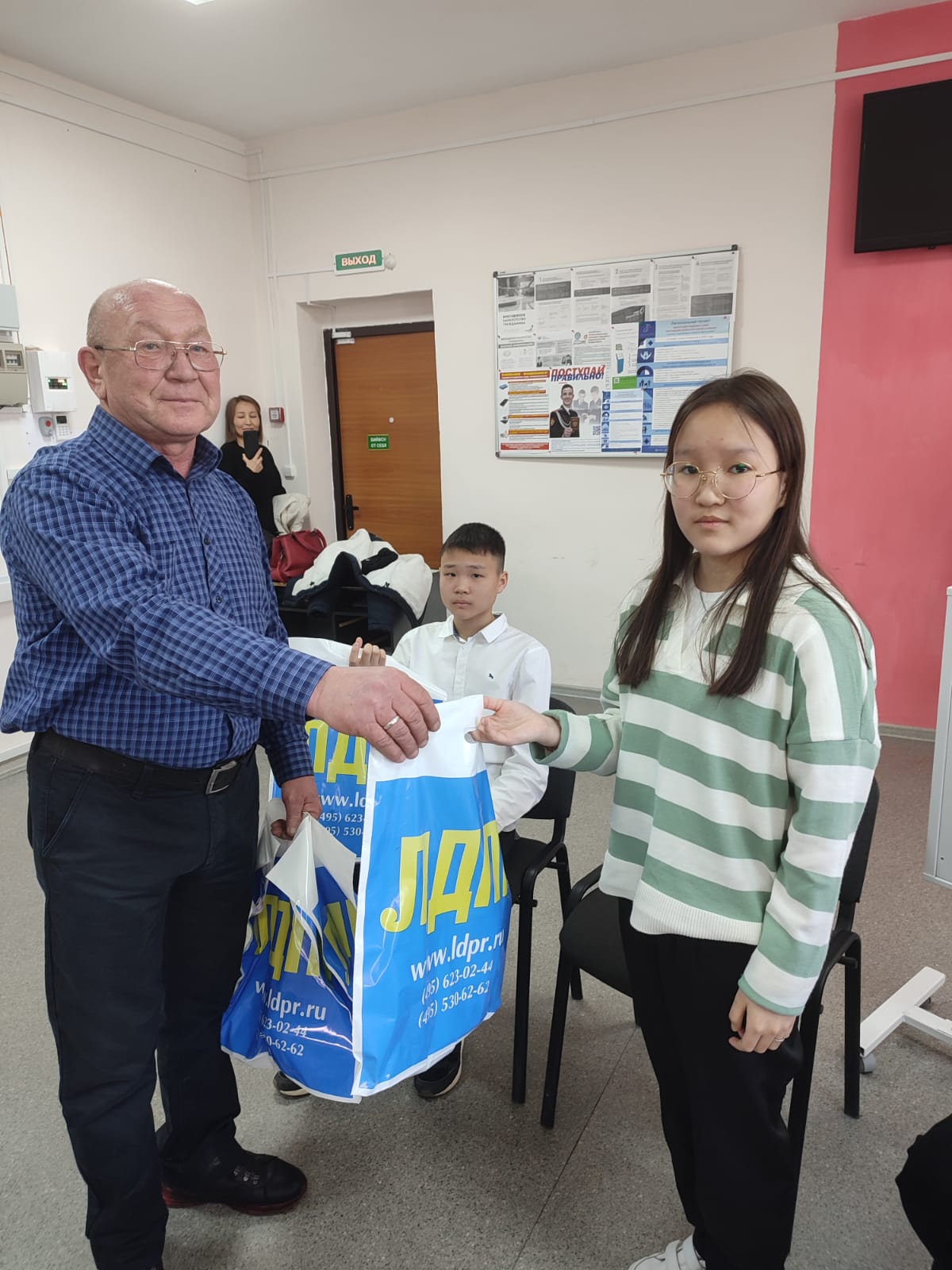 Представитель ЛДПР в Черноземельском районе лично поздравил каждого участника мероприятия с этим знаменательным событием и вручил подарки от ЛДПР. В ответ ребята выразили благодарность.