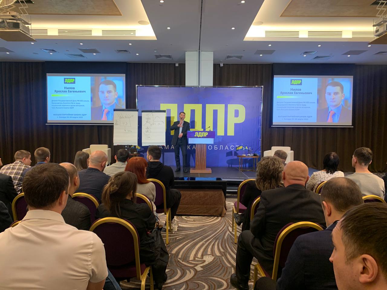 Далее, перед партийцами с лекциями выступили депутаты Госдумы от ЛДПР Ярослав Нилов, Алексей Диденко и Борис Чернышов. Темы касались работы с информационной политикой и вбросами, парламентарии рассказали, как создавать информповоды и креативно работать в соцсетях в режиме стрессовой ситуации. Особое внимание уделили молодёжному крылу партии.