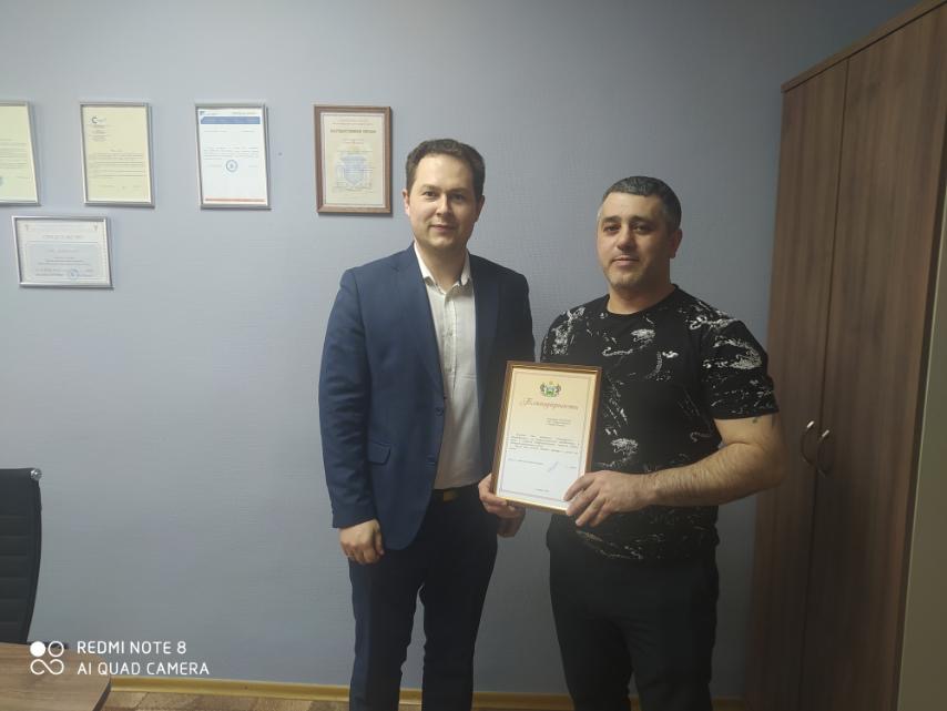 В рамках рабочей поездки депутаты фракции ЛДПР Тюменской облдумы Артем Зайцев и Глеб Трубин посетили ряд социальных учреждений и мероприятий. На встрече с коллективом ООО "Энергопроект" Глеб Трубин вручил сотруднику организации Благодарственное письмо депутата за добросовестный труд и высокое профессиональное мастерство.