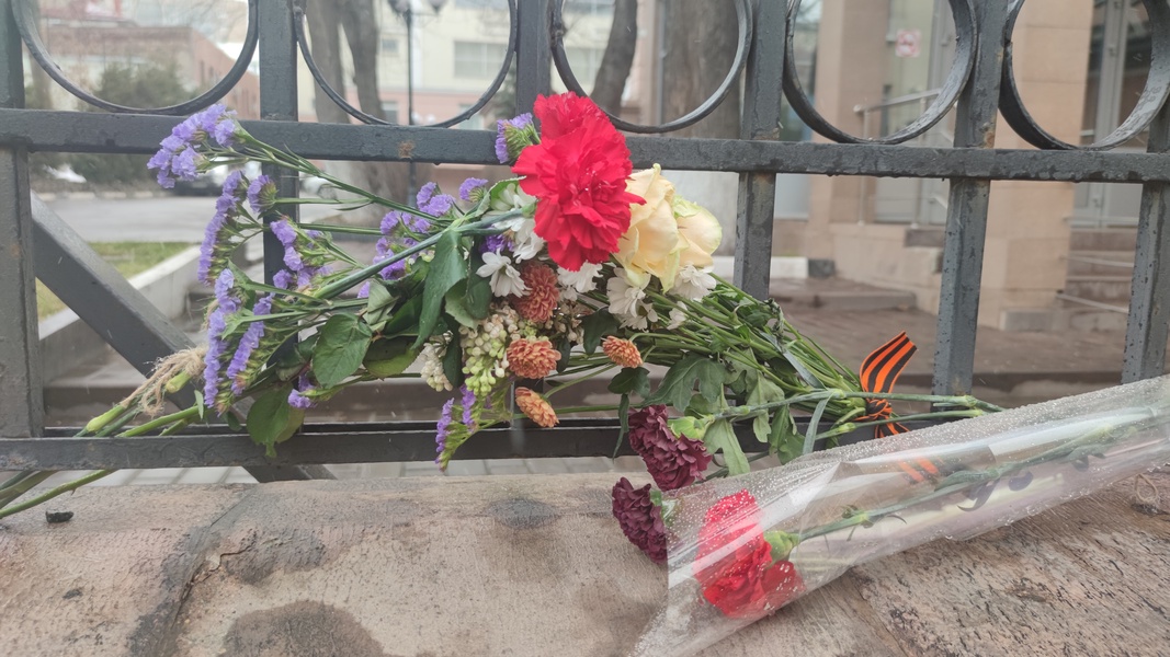 С самого утра к зданию Института Мировых Цивилизаций в Басманном переулке приносят цветы в память о Лидере ЛДПР, основателе вуза Владимире Жириновском