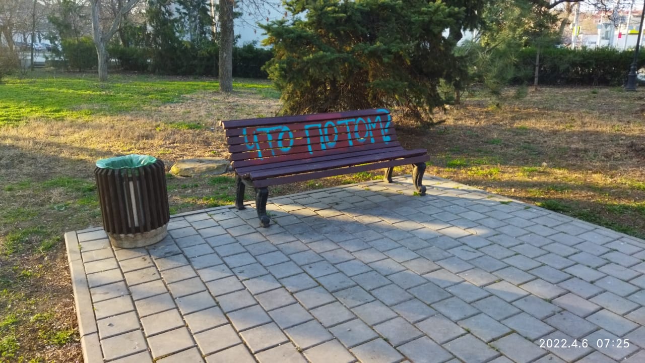 И снова вандалы разукрасили лавочки в севастопольском сквере