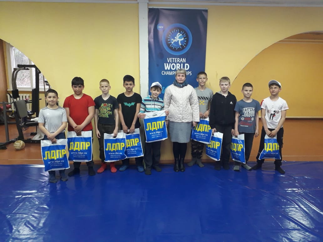 Заместитель руководителя Глинковского отделения ЛДПР Лариса Колестратова поздравила глинковских борцов с успешным выступлением на Межрайонном открытом турнире по вольной борьбе в Глинке