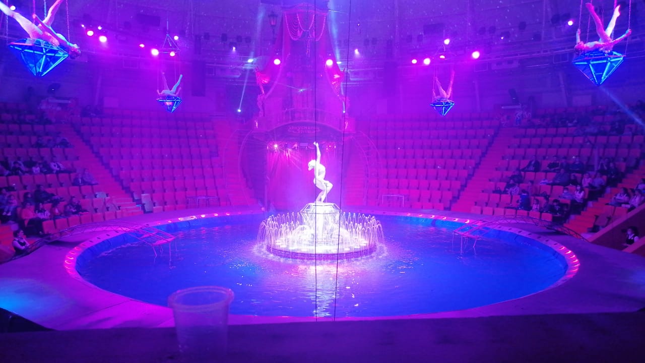 Акробаты показывали сложнейшие номера, в том числе, в воздухе, зрелище сопровождалось переливающимся поющим фонтаном, старались не только люди, но и морские артисты, выступление морского котика покорило и детей и взрослых.