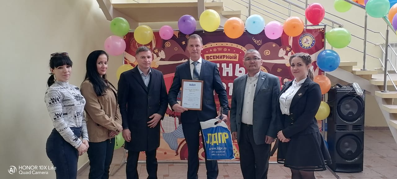 Тимофей Щербаков, руководитель фракции ЛДПР в Думе АО вручил директору Астраханского Государственного цирка Владимиру Витову благодарственное письмо. В ответ партийцы были приглашены на незабываемое цирковое шоу, акробаты в этот день старались побить личные рекорды.