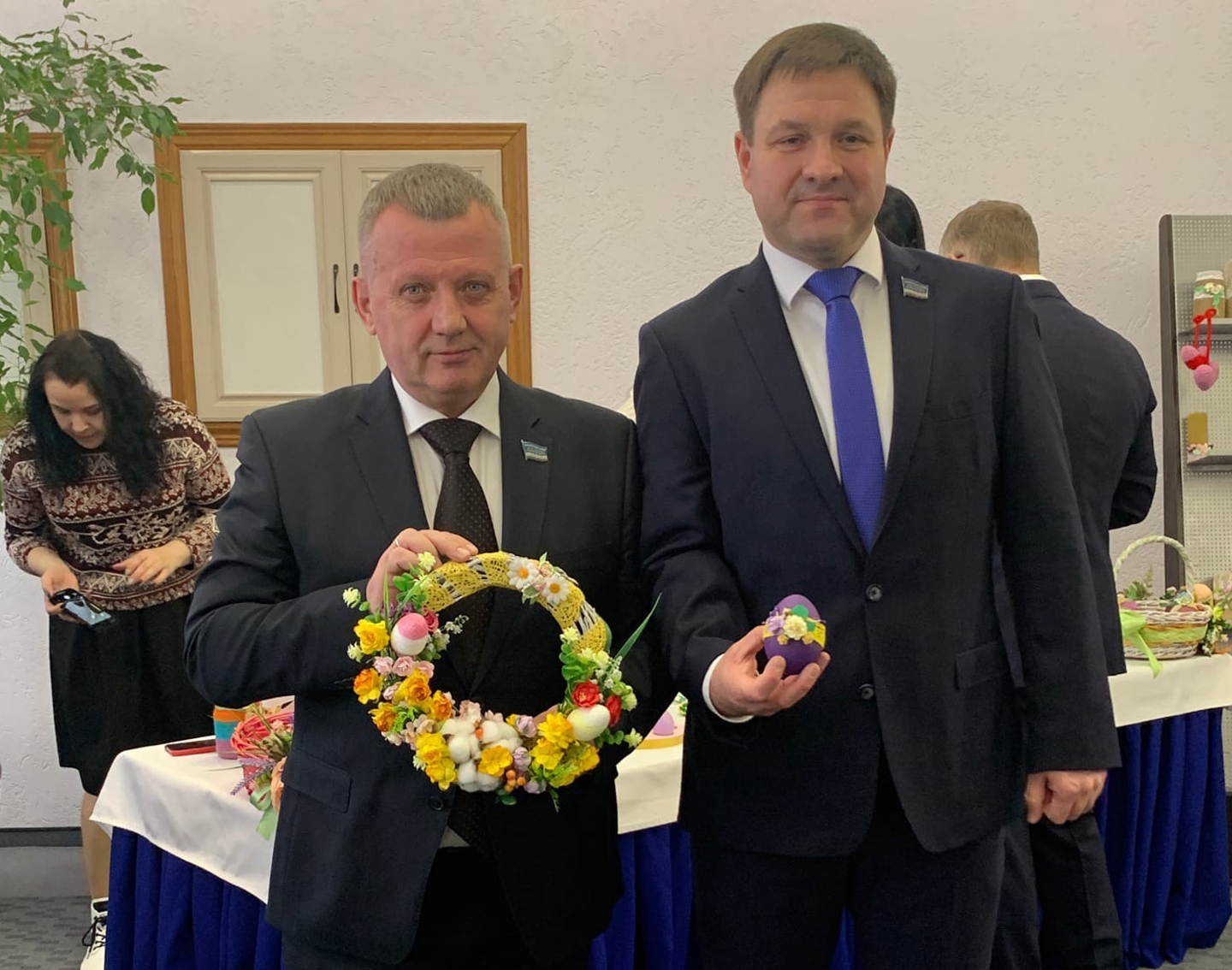 В рамках акции депутаты Денис Садовников и Александр Голубенко приобрели оригинальные сувениры ручной работы, изготовленные волонтерами, педагогами и воспитанниками воскресной школы. Все собранные средства поступят в благотворительный фонд «Ямине», чтобы помочь двум юным ямальцам из Нового Уренгоя пройти курс реабилитации.