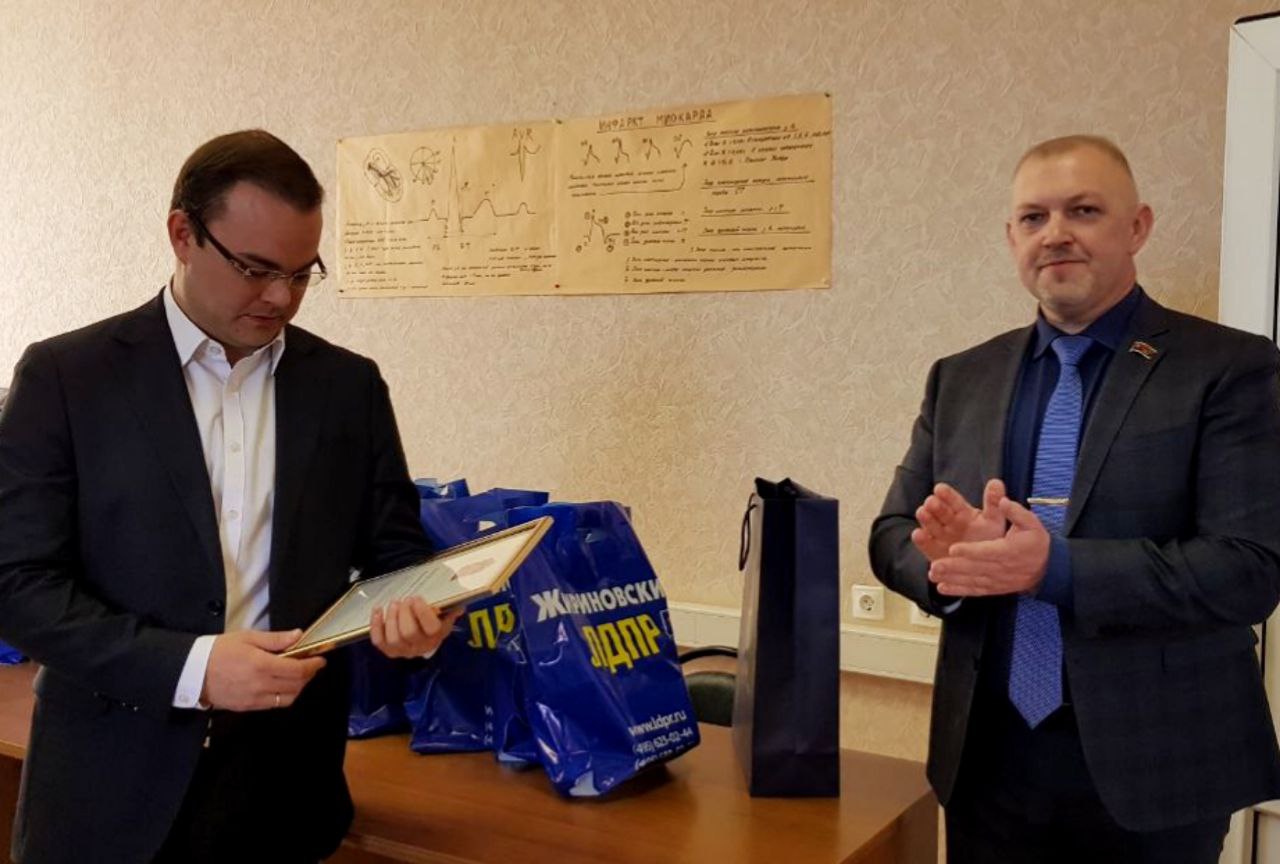 Координатор Московского областного отделения ЛДПР, руководитель фракции ЛДПР в Мособлдуме Кирилл Жигарев поздравил работников скорой медицинской помощи с профессиональным праздником в ГБУЗ МО «Лобненская ЦГБ».