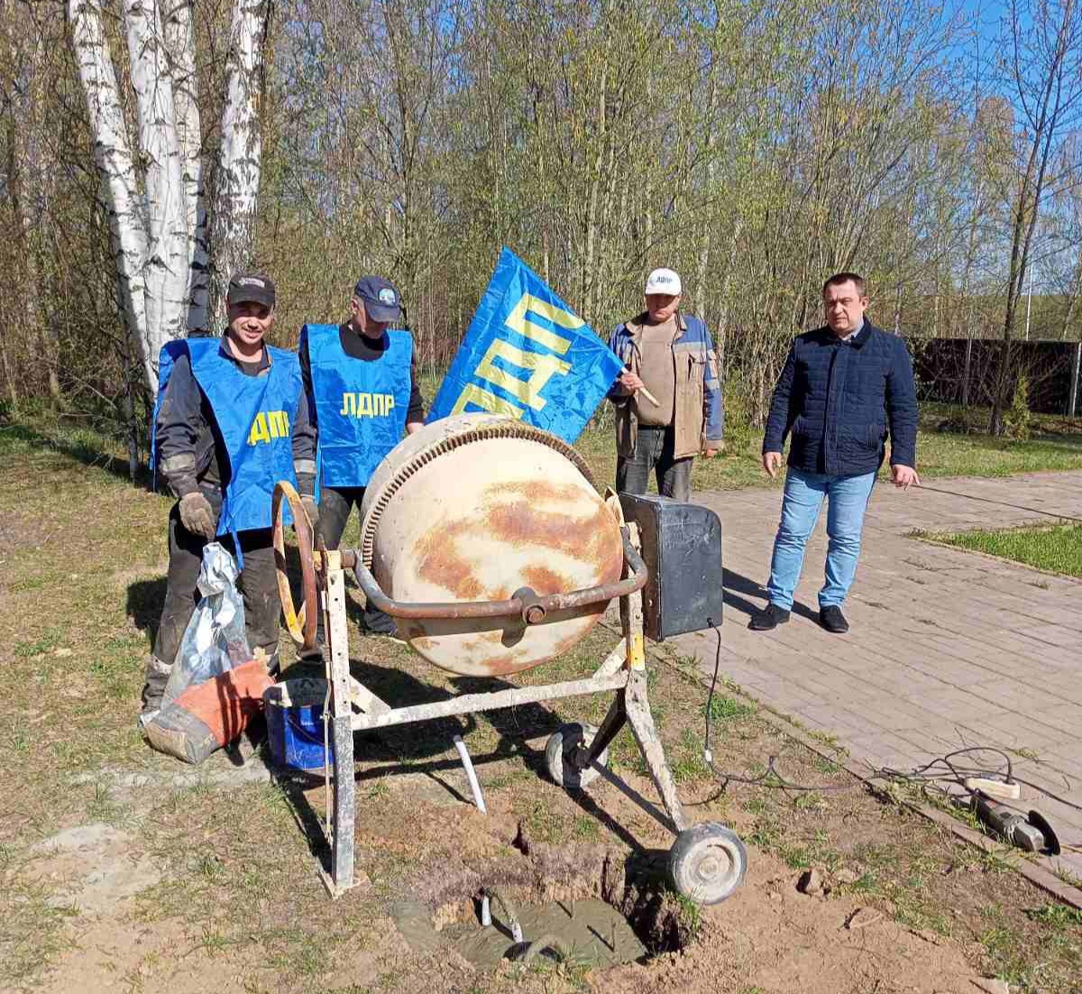 Активисты ЛДПР под руководством депутата Десногорского городского Совета Андрея Алейникова приступили к закладке фундамента под световые опоры у памятника Погибшим морякам всех поколений.