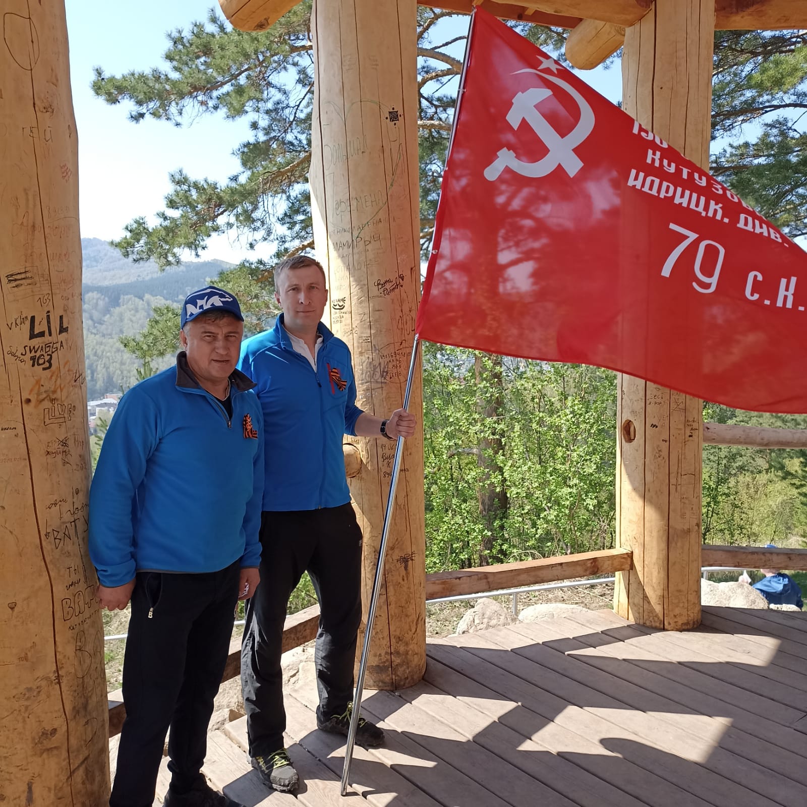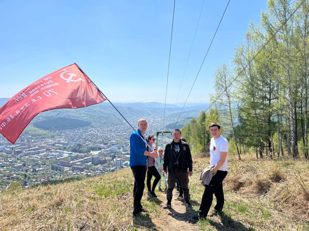 В рамках акции «Знамя Победы» депутат ЛДПР Дмитрий Софронов поднял флаг на гору Тугая