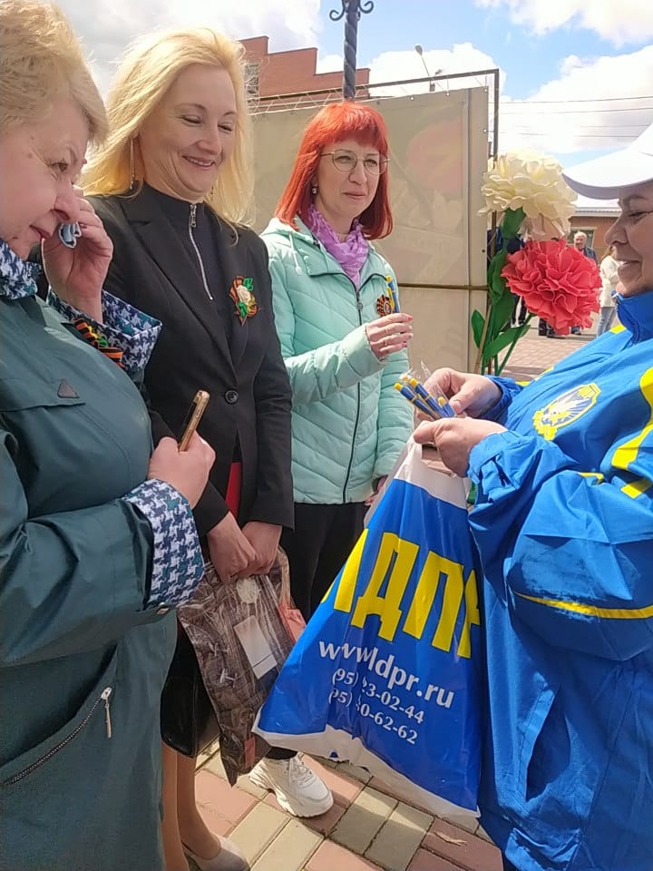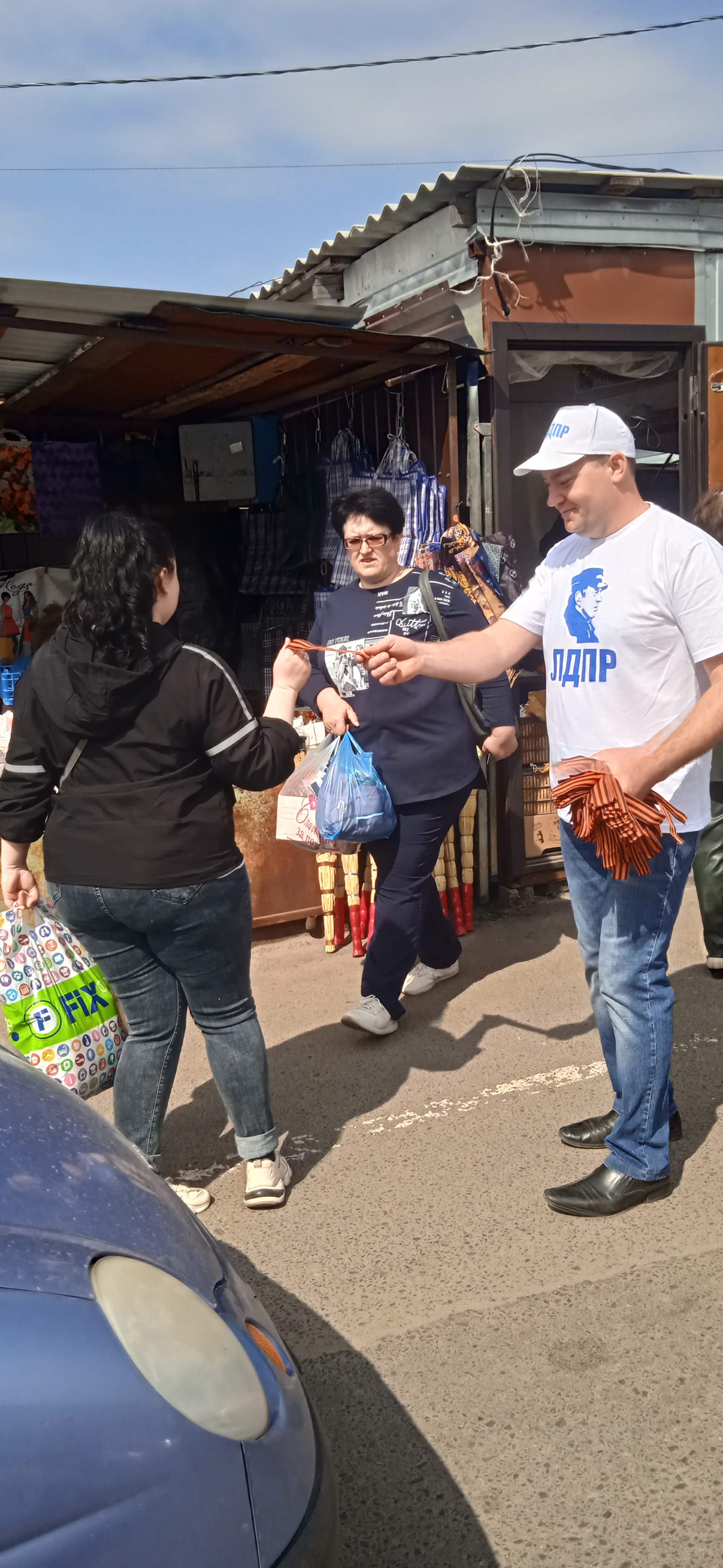 В преддверии Дня Победы активисты приграничного Суджанского и Тимского отделений ЛДПР раздавали местным жителям георгиевские ленточки.