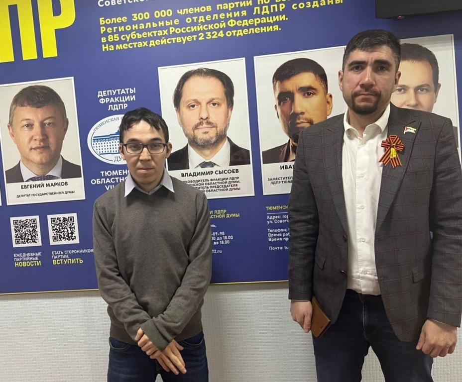 Заместитель руководителя фракции ЛДПР Тюменской областной Думы Иван Вершинин провел встречу с членом Общественной палаты Тюменской области, руководителем некоммерческой организации по вопросам поддержки граждан, имеющих ограничения по здоровью Тимуром Нигматуллиным