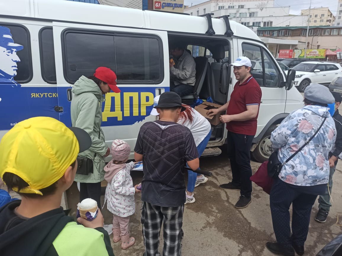 Якутское региональное отделение не упускает случая, чтобы не порадовать население города различными акциями и подарками. Международный день защиты детей не стал исключением. Актив партии раздал детям шарики, мороженое, атрибутику в виде бейсболок, тетрадей и информационных материалов.