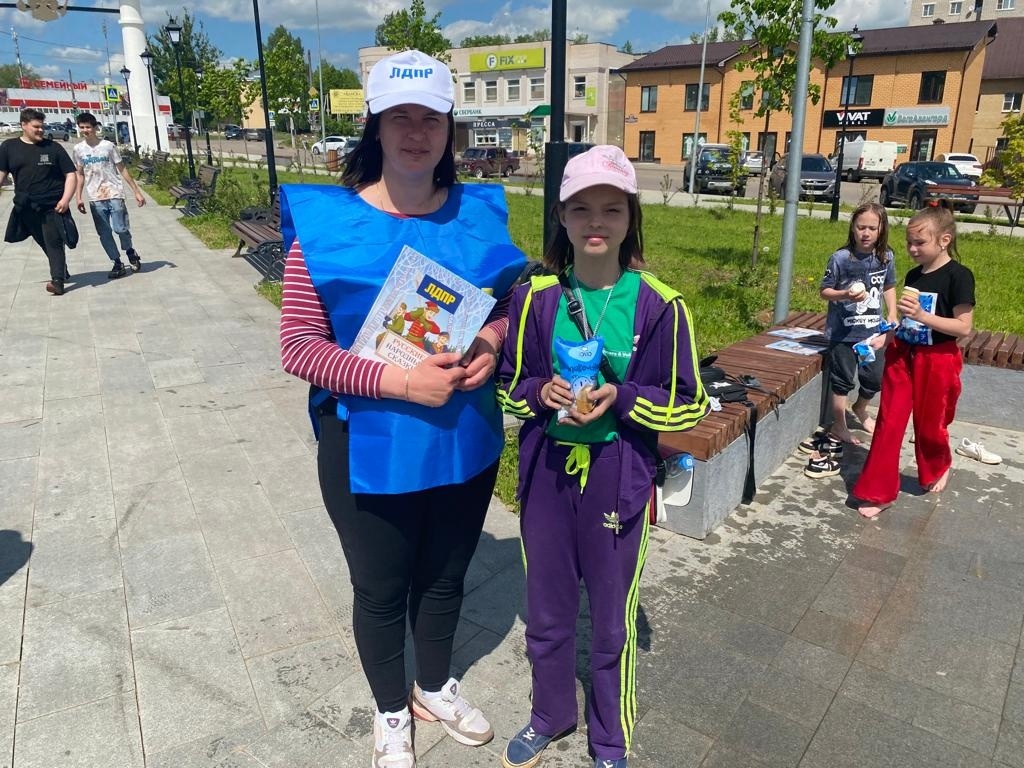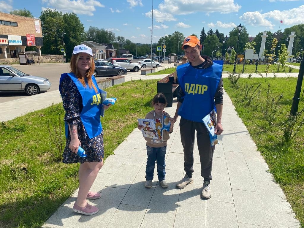 Руководитель Вяземского отделения ЛДПР Ренат Чурбанов и депутаты Вяземского райсовета Виталий Коломацкий и Игорь Вайтишин с активистами порадовали детей района сказками и мороженым