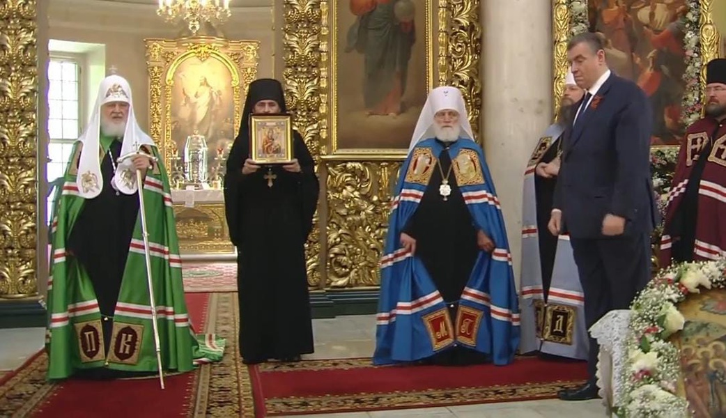 Патриарх Кирилл благословил главу ЛДПР иконой Скоропослушницы и пожелал, чтобы «Покров её» простирался над «сопартийцами и единомышленниками» парламентария.