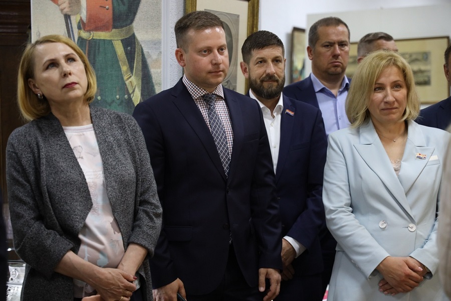 Депутаты фракции ЛДПР Евгений Мишин и Андрей Лыжов вместе с парламентариями Заксобрания посетили выставку «Когда Россия молодая мужала с гением Петра».