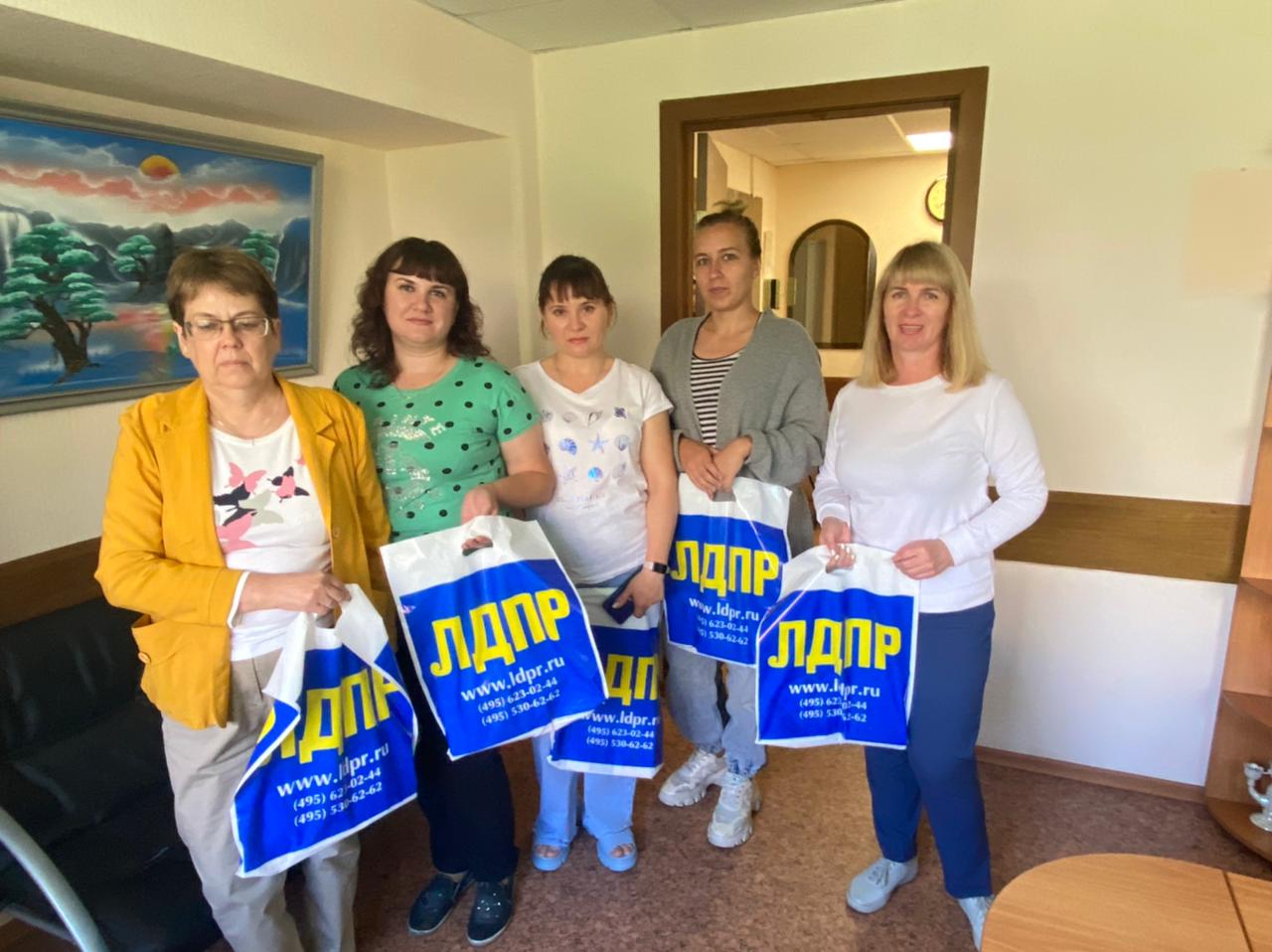 Представитель Молодежной организации ЛДПР Александр Ильс в честь Дня социального работника вручил памятные подарки коллективу Управления социальной защиты населения Администрации Калтанского городского округа