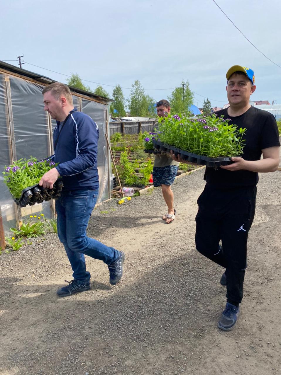 Депутат ЛДПР Думы Сургута Вадим Майоров вместе с супругой и коллегами по партии, помощниками депутатов Зиновием Сисак и Артëмом Кочешковым приняли активное участие в высадке цветов в курируемом депутатом 38-м микрорайоне