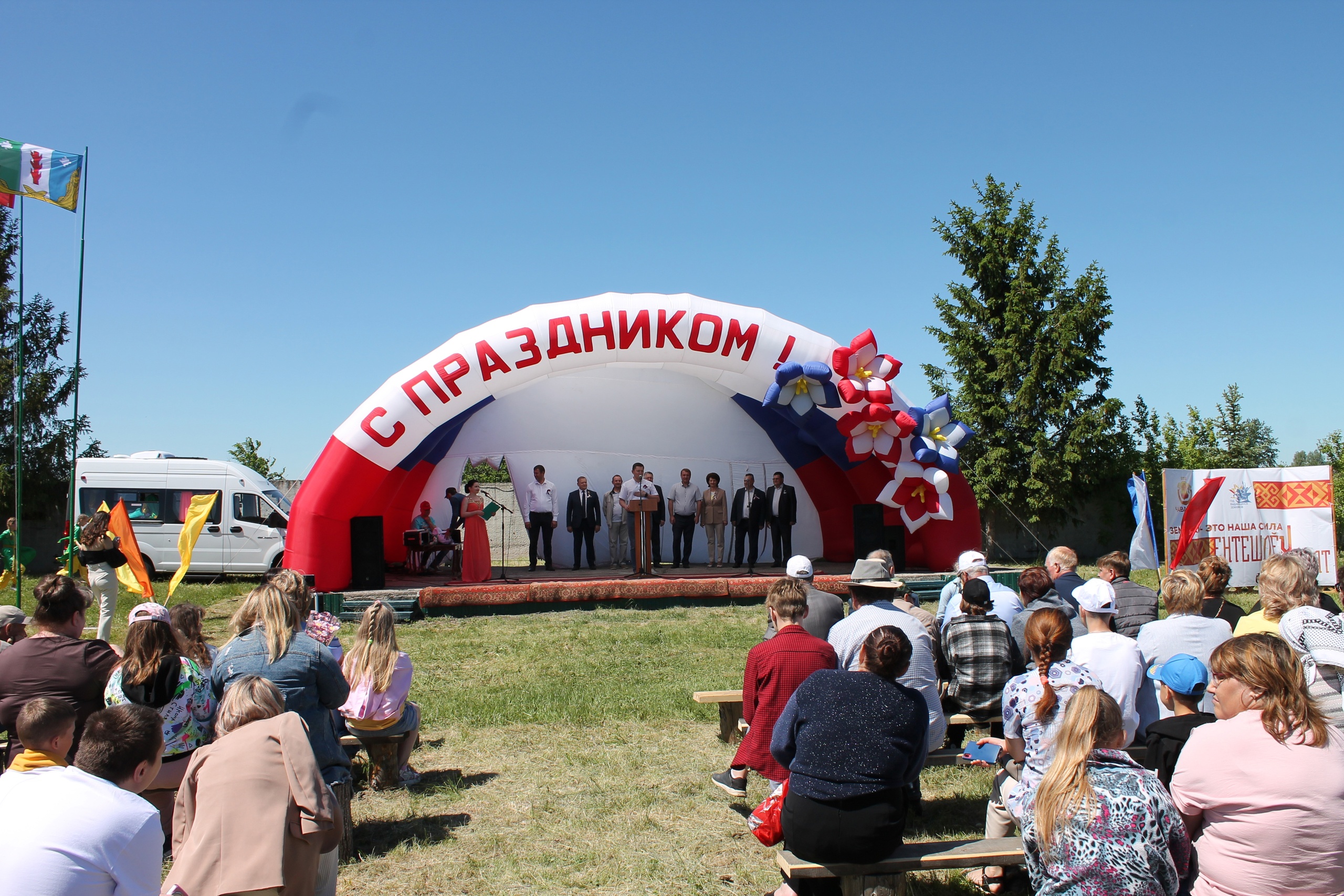 С приветственным словом к жителям района обратился Депутат Государственного Совета Чувашской Республики от партии ЛДПР Константин Степанов и поздравил жителей с завершением весенних полевых работ.