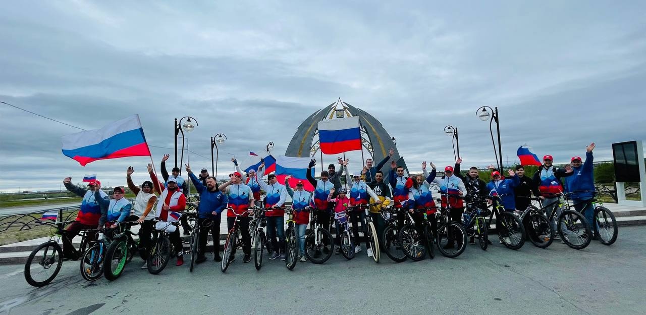 В городе Лабытнанги депутат Игорь Воробьев принял участие в велопробеге по случаю празднника, а координатор местного отделен7ия Шамиль Арсланбеков поздравил граждан, подарив сувениры.