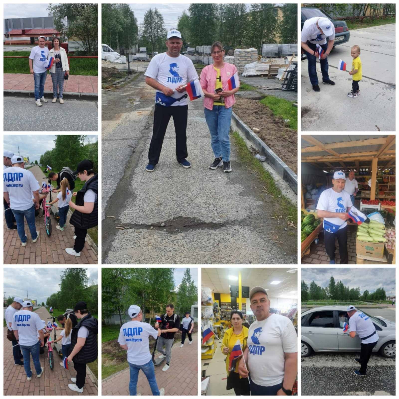 Традиционно, в честь Дня России по Ямалу прошла волна одиночных пикетов ЛДПР, в ходе проведения которых партийцы поздравляли граждан с праздником, дарили им российские триколоры и сувениры от партии, сопровождая теплыми пожеланиями