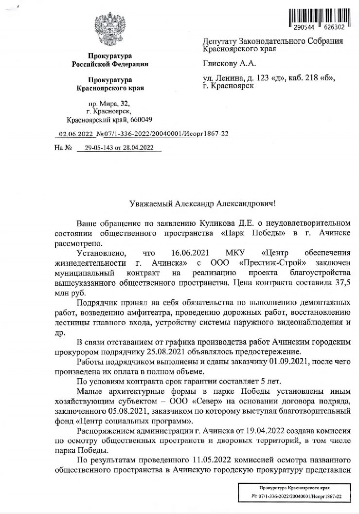 Ждём от прокуратуры мер реагирования, ведь сроки устранения уже вышли.