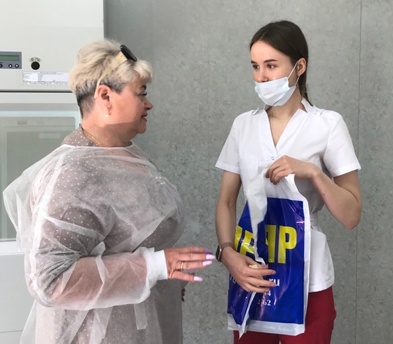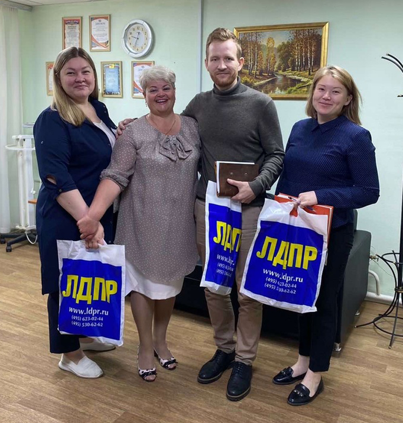 Сопровождая поздравление теплыми пожеланиями и словами благодарности, представительница ЛДПР вручила медработникам подарки от партии.