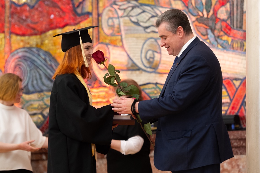 Председатель ЛДПР Леонид Слуцкий встретился с выпускниками Московского государственного университета имени М.В. Ломоносова. Политик посетил церемонию вручения дипломов и поздравил молодых людей с успешным окончанием учёбы