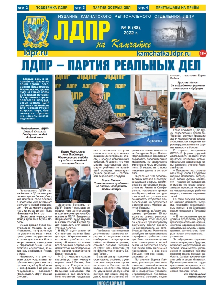 Читайте свежий выпуск газеты «ЛДПР на Камчатке»