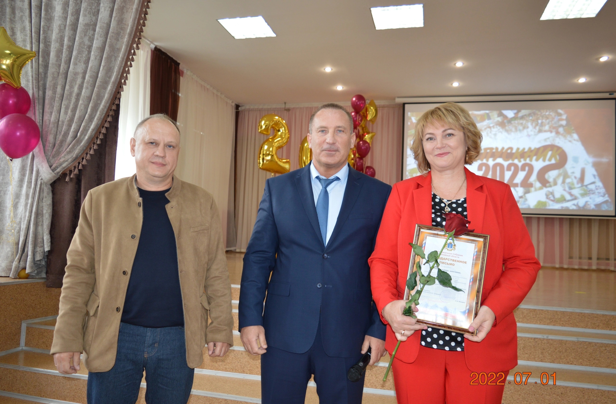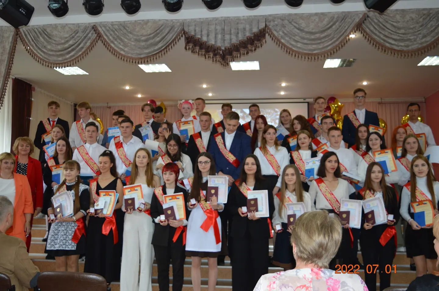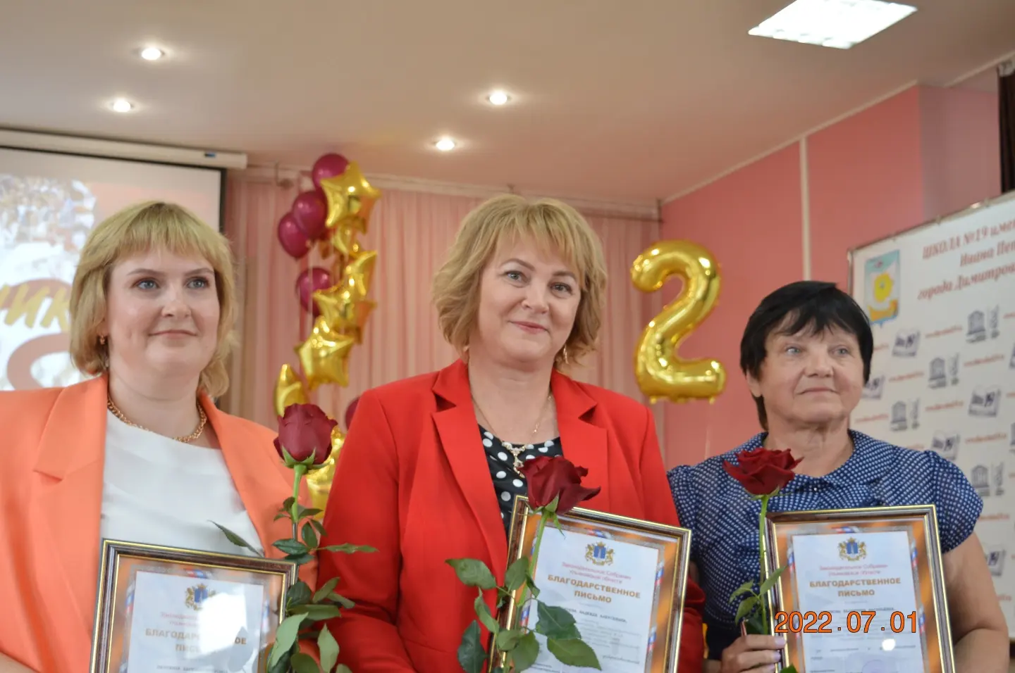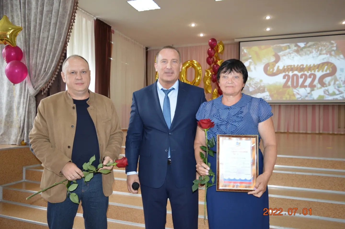 Дмитрий Грачёв и Сергей Юндин вместе с директором школы Надеждой Алексеевной Дегтярёвой вручили медали за «Особые успехи в учении» девяти выпускникам школы, поздравили и вручили золотые медали лучшим из лучших, а также Благодарственные письма от Заксобрания области директору школы и учителям Евгении Петровне Нехожиной и Валентине Васильевне Сазоновой.