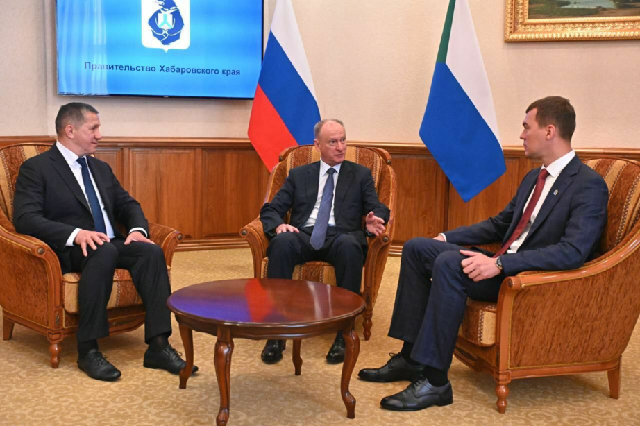Состоялась рабочая встреча главы Хабаровского региона Михаила Дегтярёва, секретаря Совбеза РФ Николая Патрушева и полпреда РФ в ДФО Юрия Трутнева