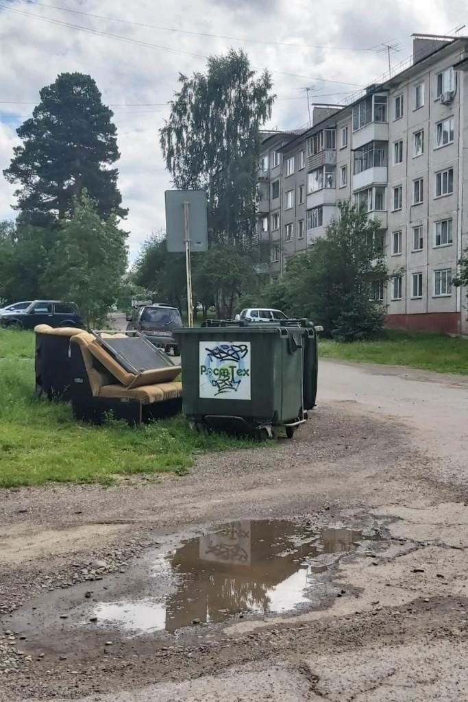 Возле домов расставлены контейнеры, но состояние площадок вызывает недовольство граждан. Кроме того, накапливается крупногабаритный мусор, который превращает территорию в свалку. Местные жители обратились к депутату краевого парламента. К обращению приложили фотографии, демонстрирующие мусорную реформу в действии.