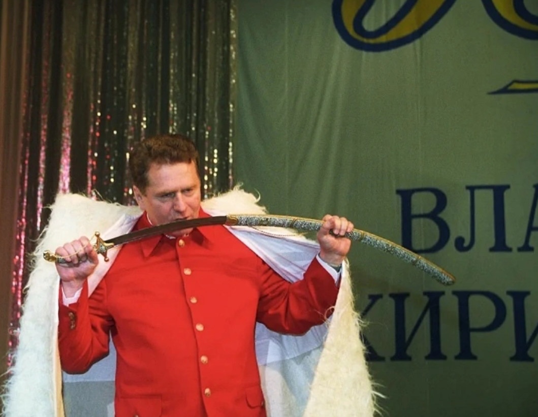 2) Владимир Жириновский в киноконцертном зале гостиницы "Россия" во время празднования 50-летнего юбилея, 1996 год.