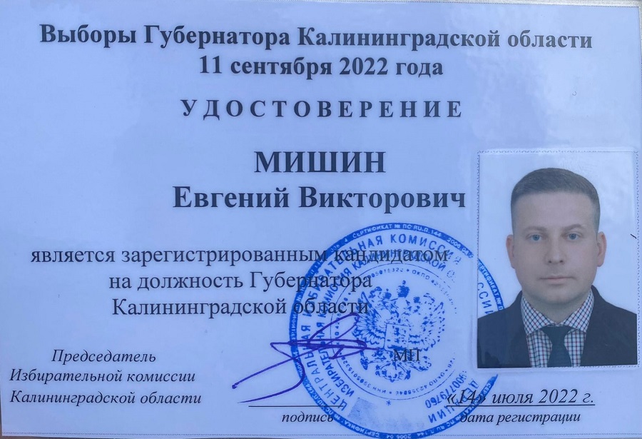 «Удостоверение получено, имею право активно работать как кандидат в губернаторы Калининградской области с избирателями», - резюмировал Евгений Мишин.