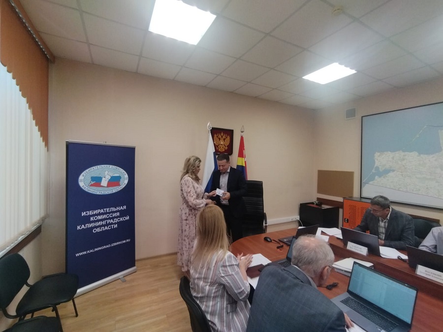 Вручение состоялось на заседании избирательной комиссии Калининградской области в четверг, 14 июля
