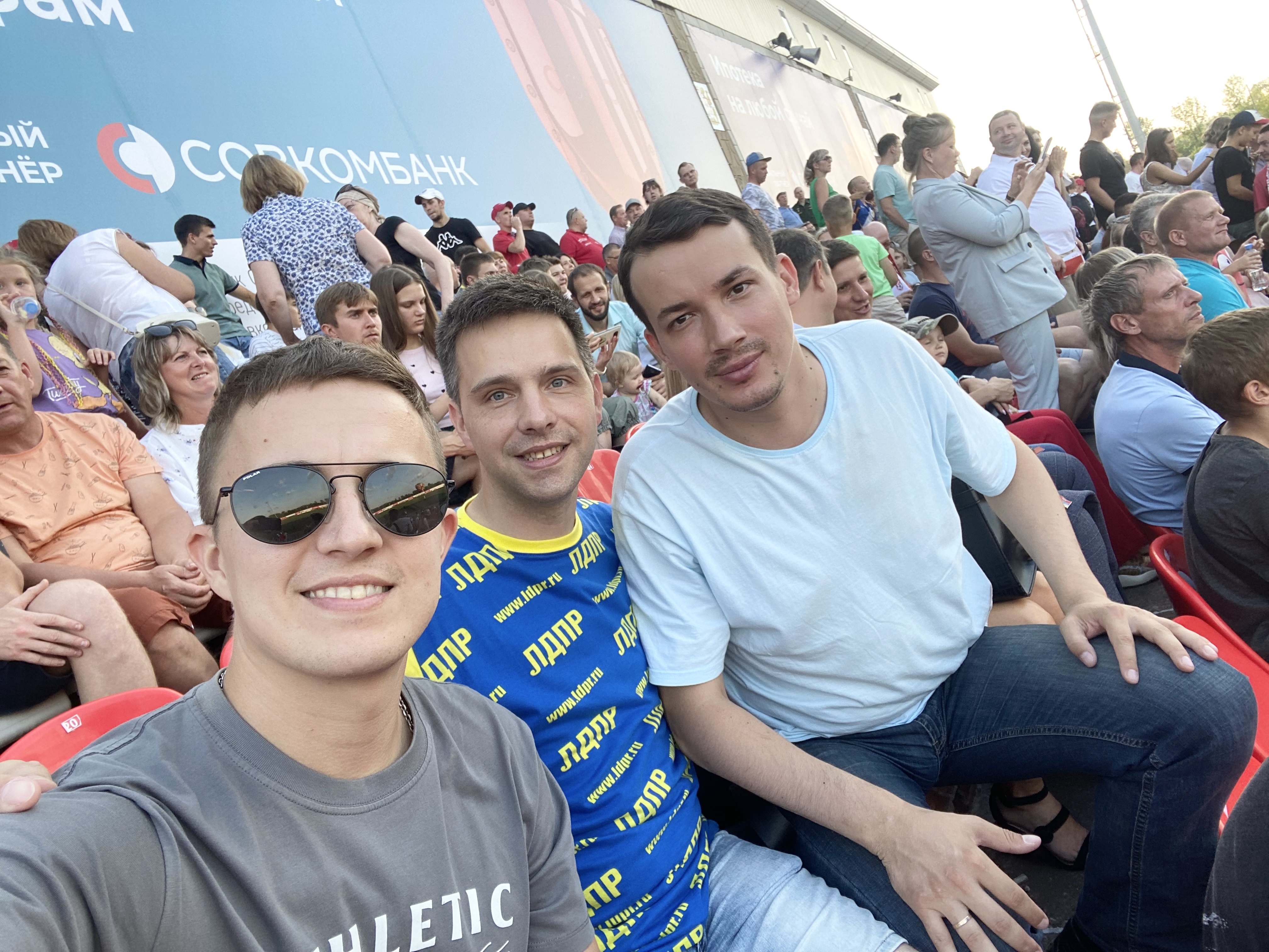 На историческом спортивном событии – первом домашнем матче возрождённого костромского «Спартака» на стадионе «Урожай» – присутствовали депутаты ЛДПР Руслан Федоров и Иван Сабуров, председатель Контрольно-ревизионной комиссии Костромского регионального отделения ЛДПР Антон Орлов.